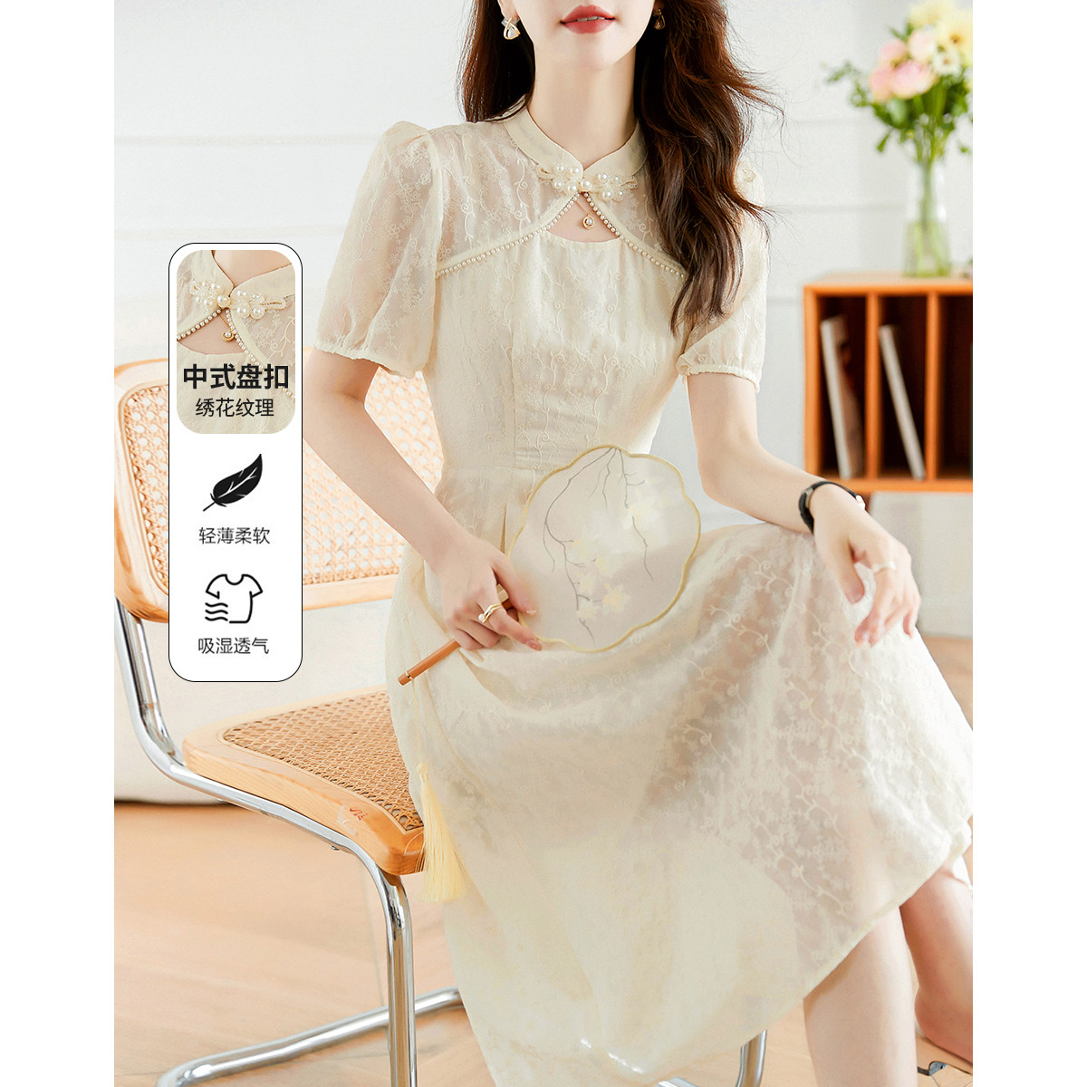 【皎月流光】夏高级感改良旗袍立体绣花设计感显瘦小个子裙子 630296