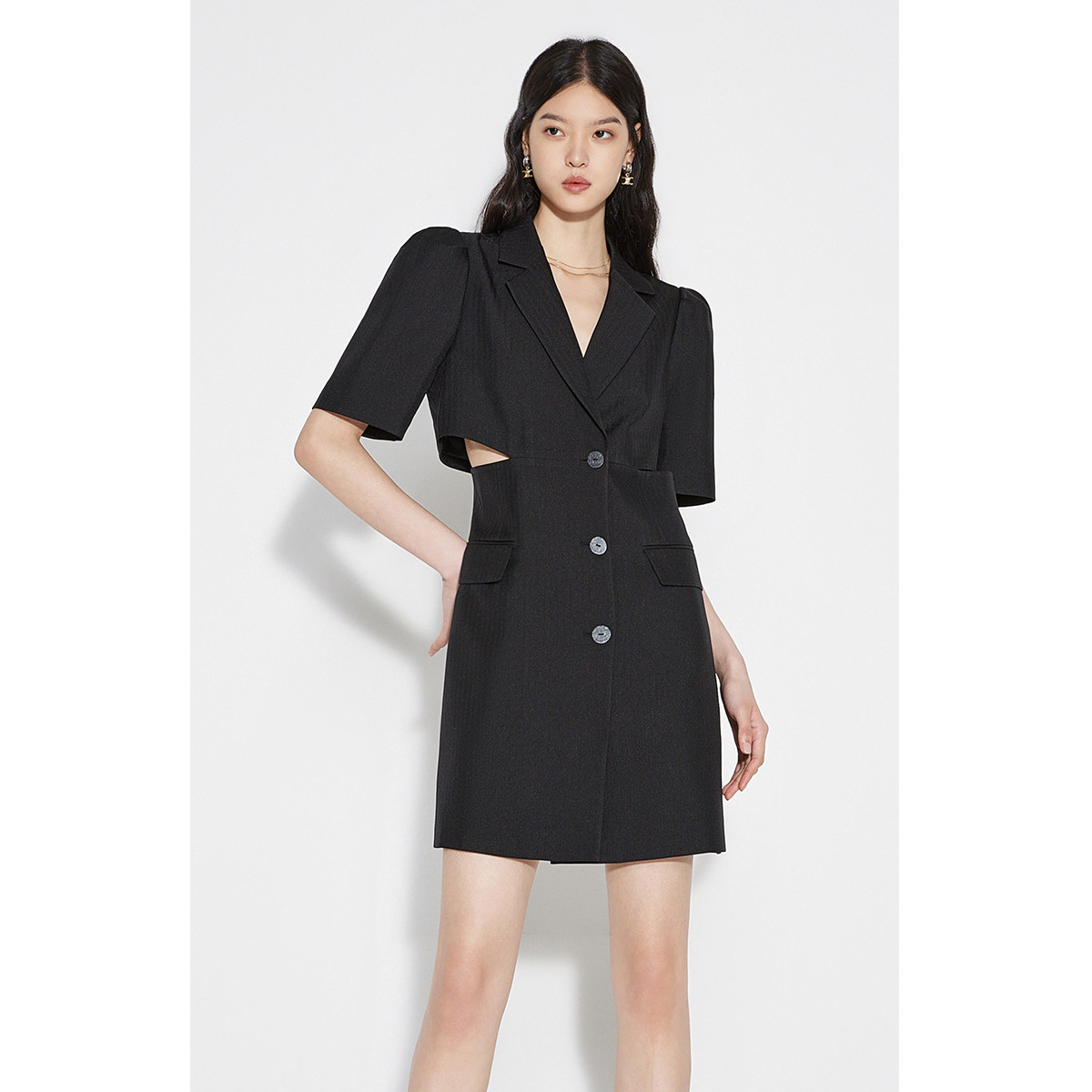 春装 辣妹风镂空露腰人字纹提花西装连衣裙 091279