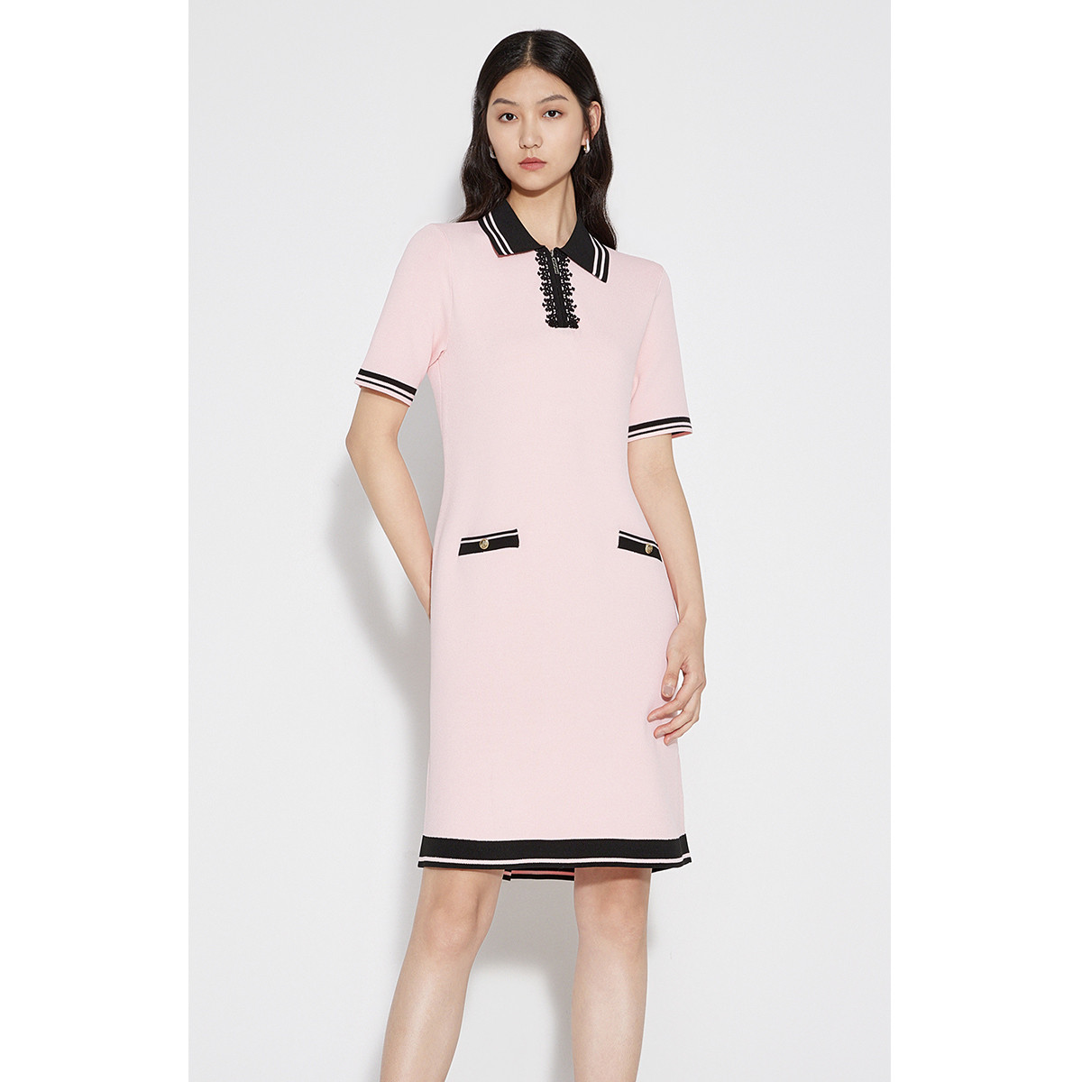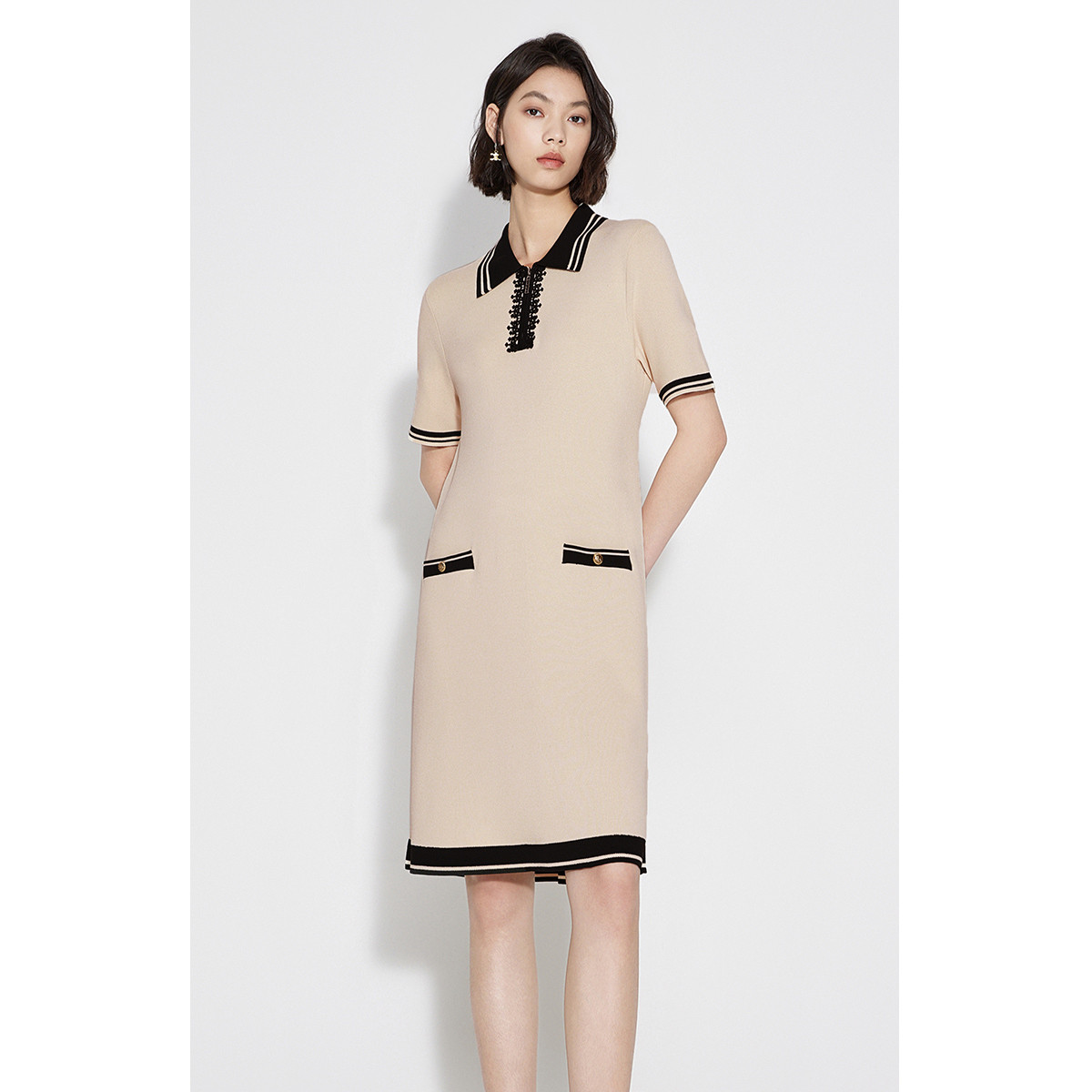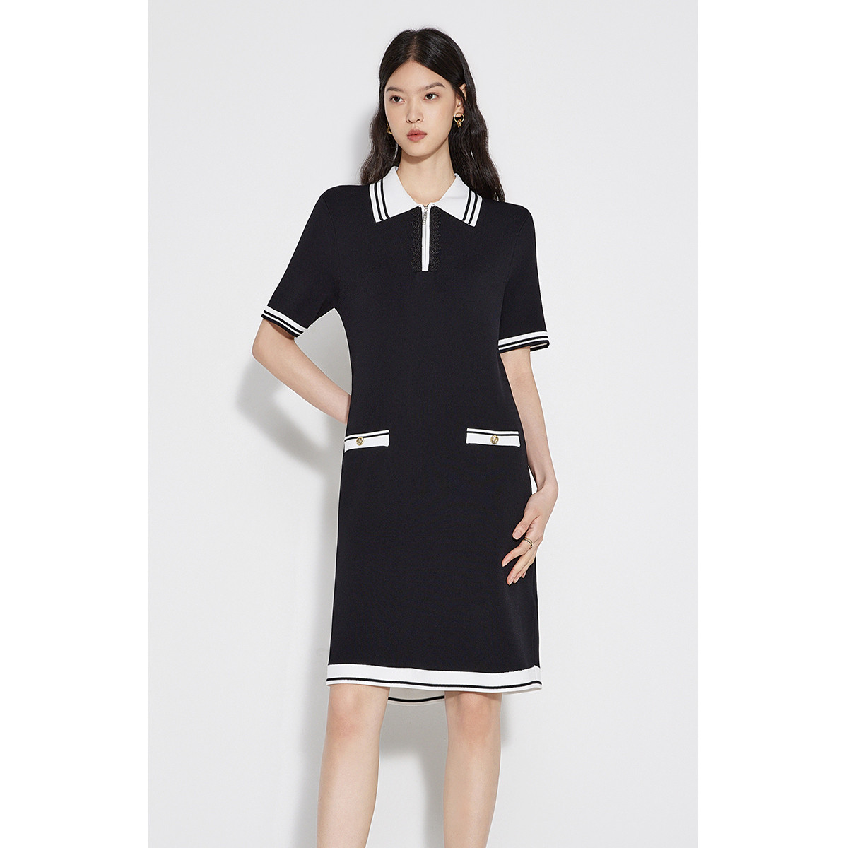 春装 撞色设计感学院风polo领针织连衣裙女 713679