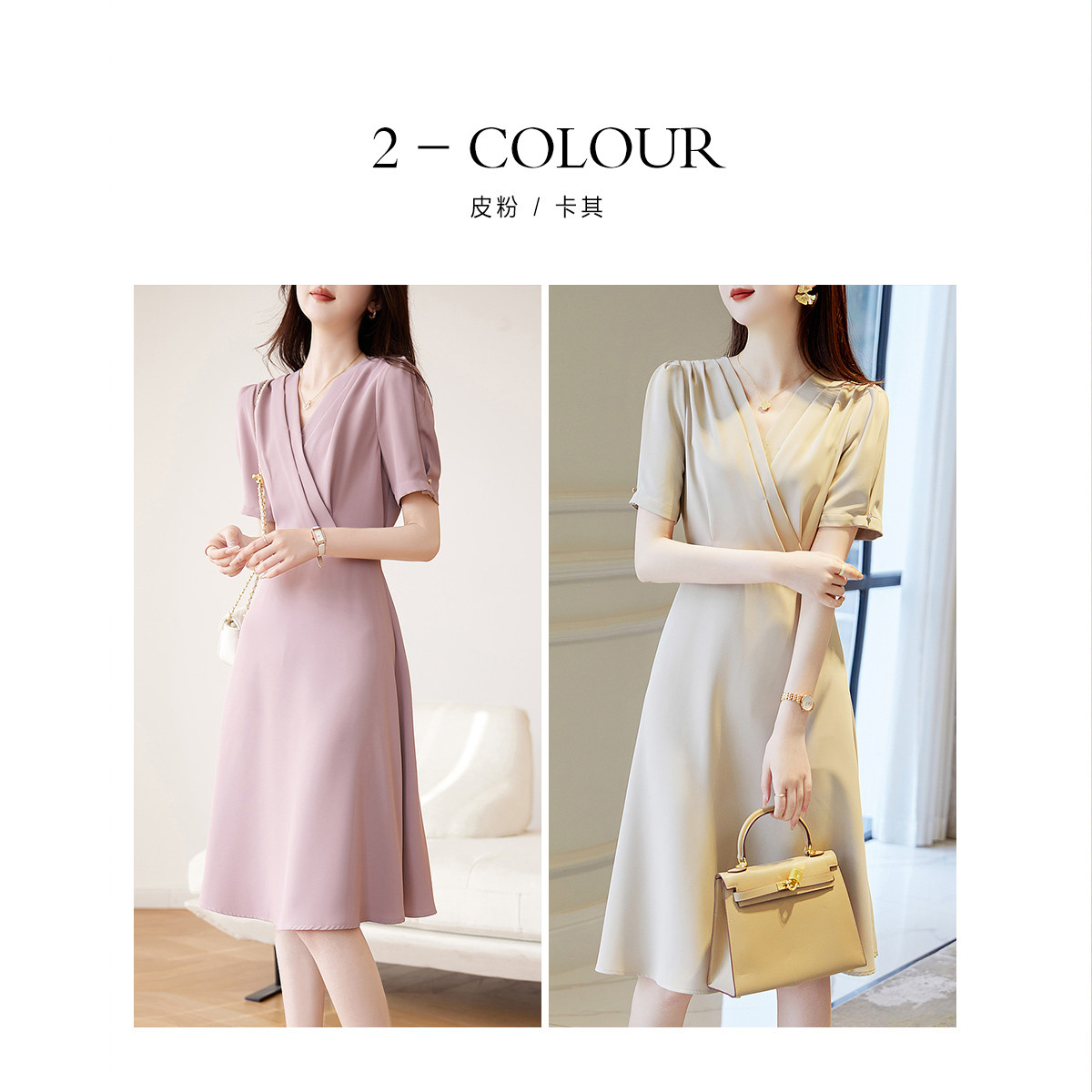 【名媛收腰裙】夏季v领短袖优雅连衣裙女中长款 511809