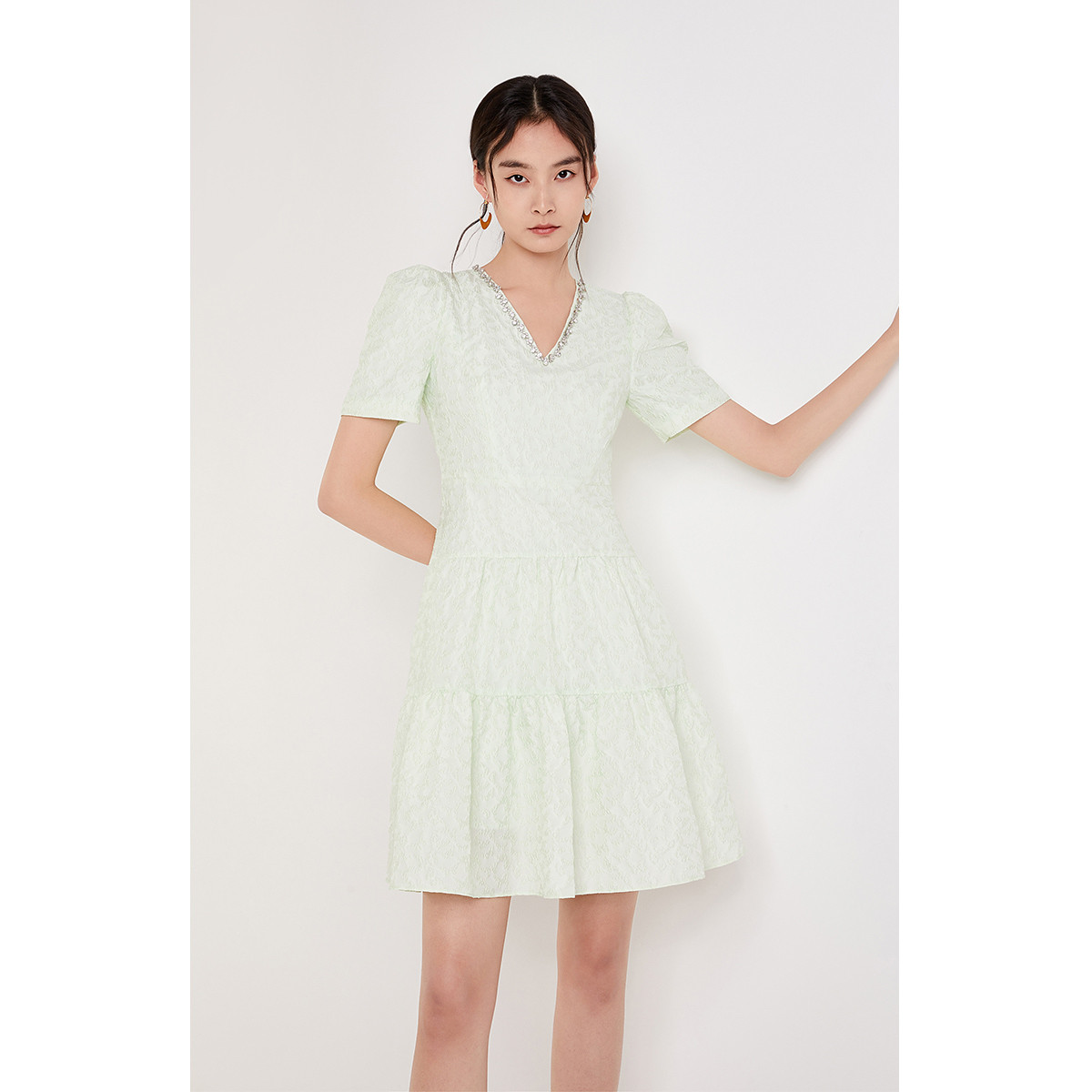 夏装 甜美小个子镶钻娃娃裙肌理感连衣裙女 224015