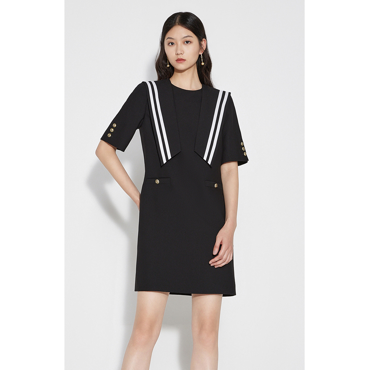 春装 学院风可拆披肩海军领A字裙连衣裙女 302479