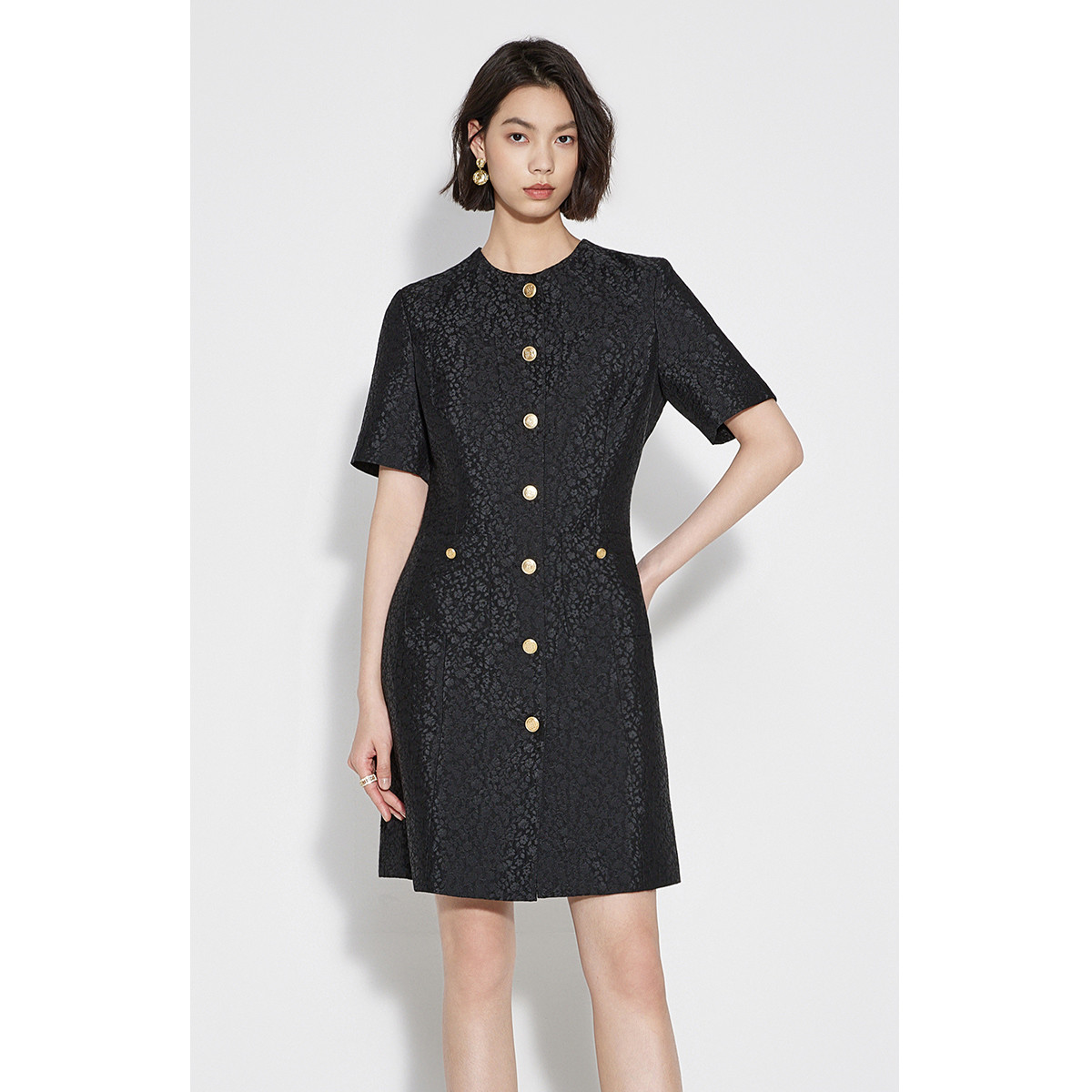 春装 肌理感提花金属扣A字裙小香风连衣裙 245839