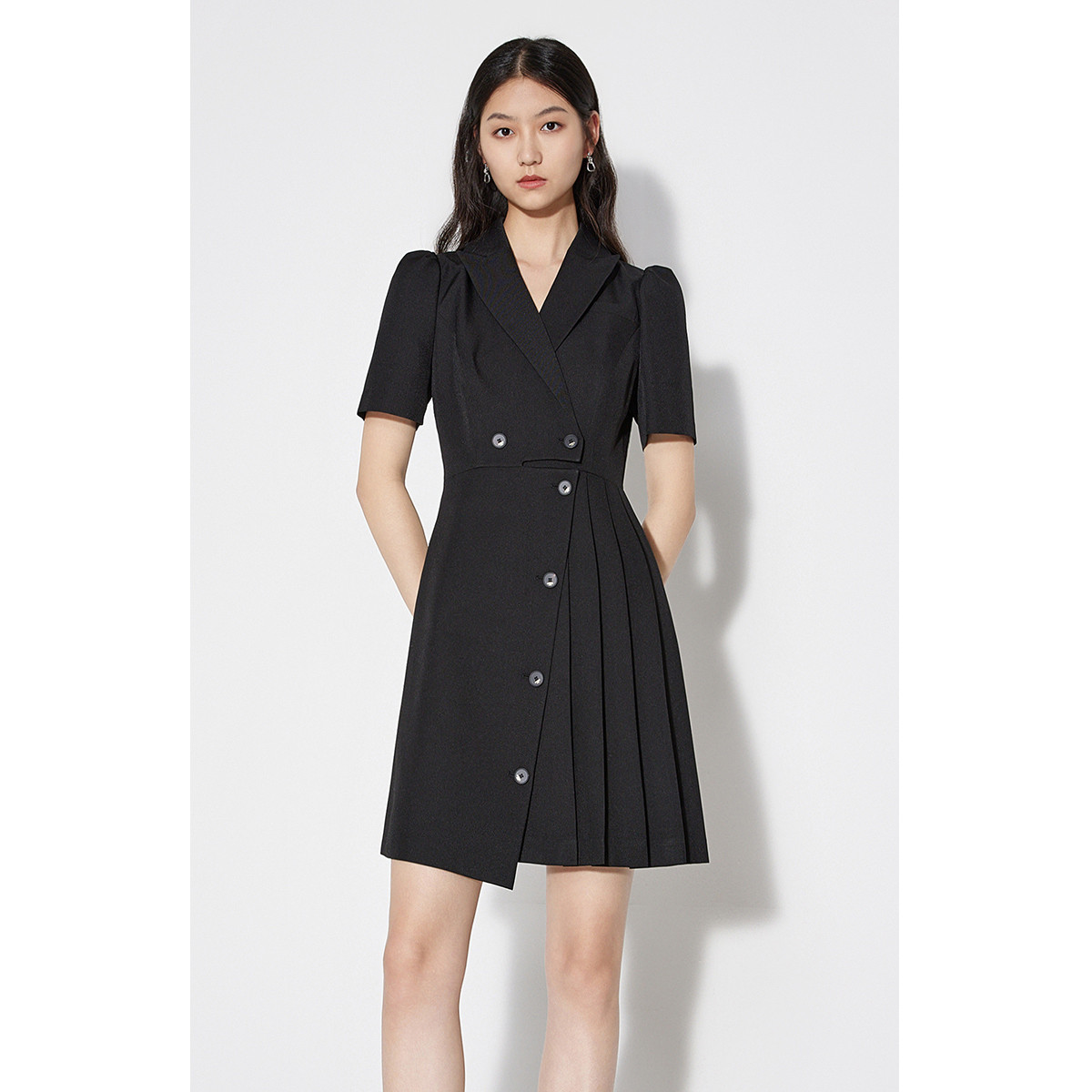 春装 设计感不规则别致压褶斜排西装连衣裙 231247