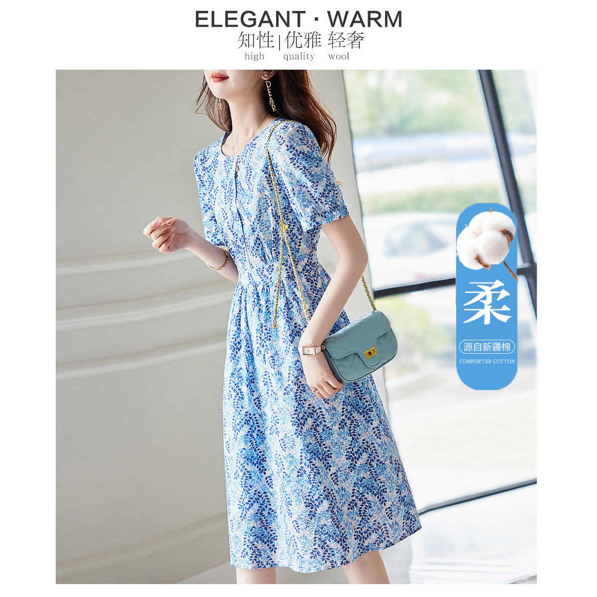 茶歇优雅气质碎花小飞袖连衣裙子女 817795