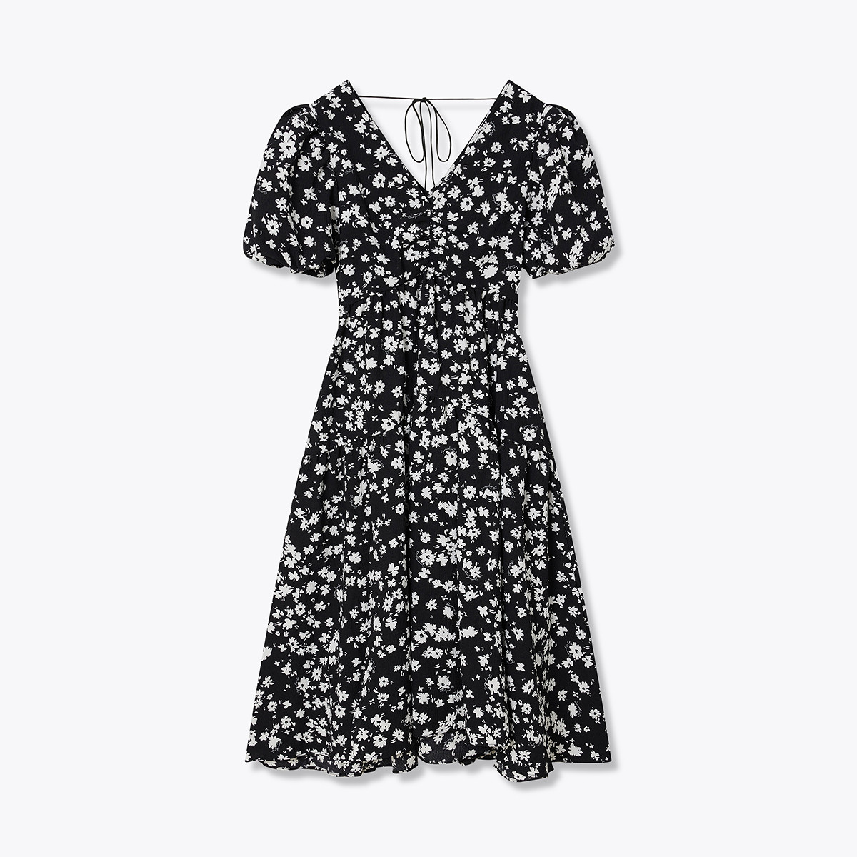 连衣裙女夏季度假风气质浪漫碎花裙子温柔慵懒泡泡袖连衣裙女 714651