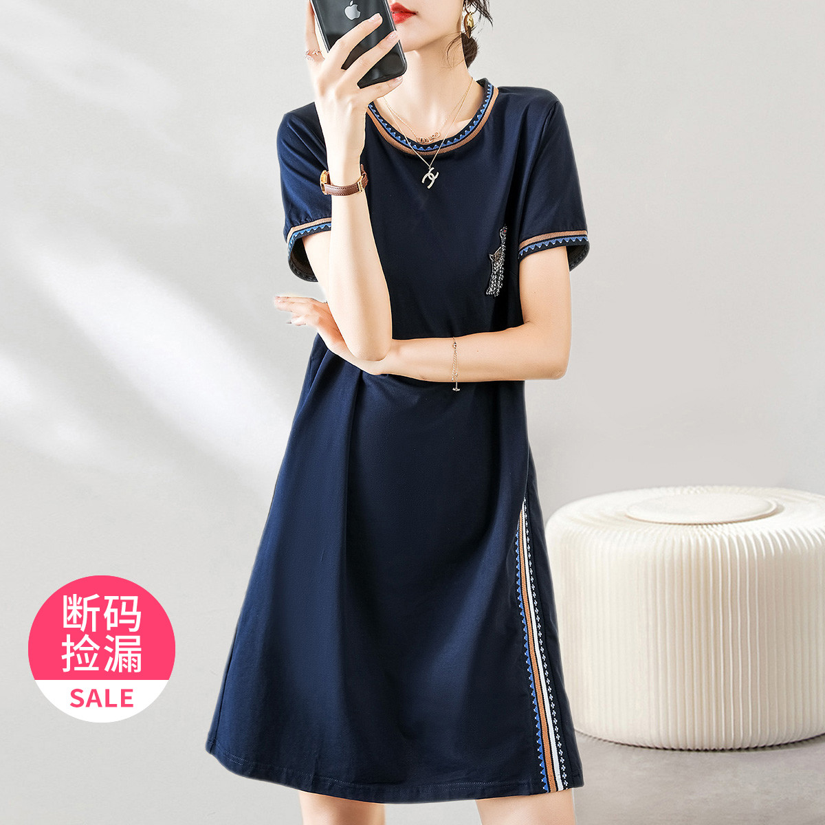 夏连衣裙宽松圆领A型裙装女 970763