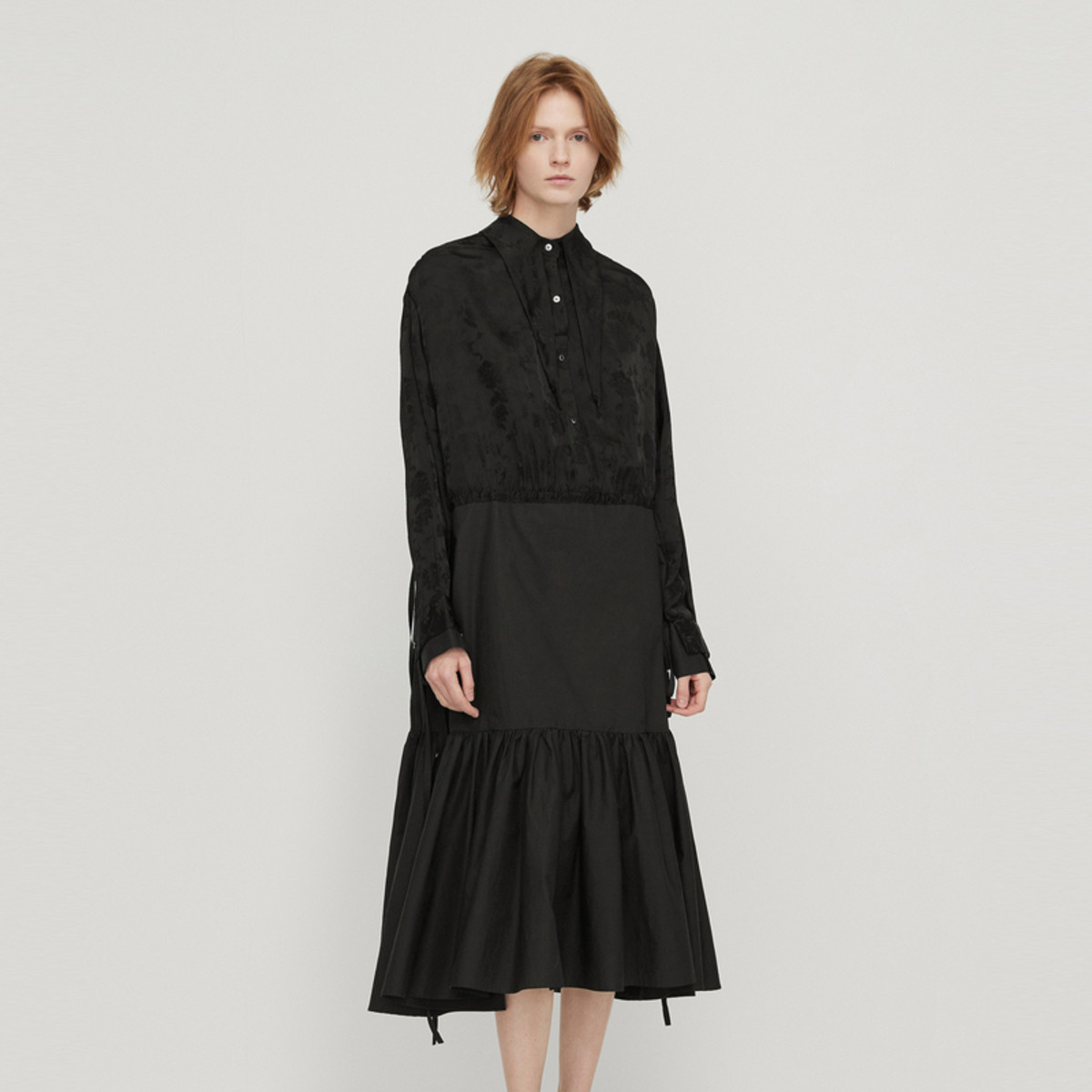 春连衣裙翻领织带休闲拼接长裙女荷叶边裙 757323