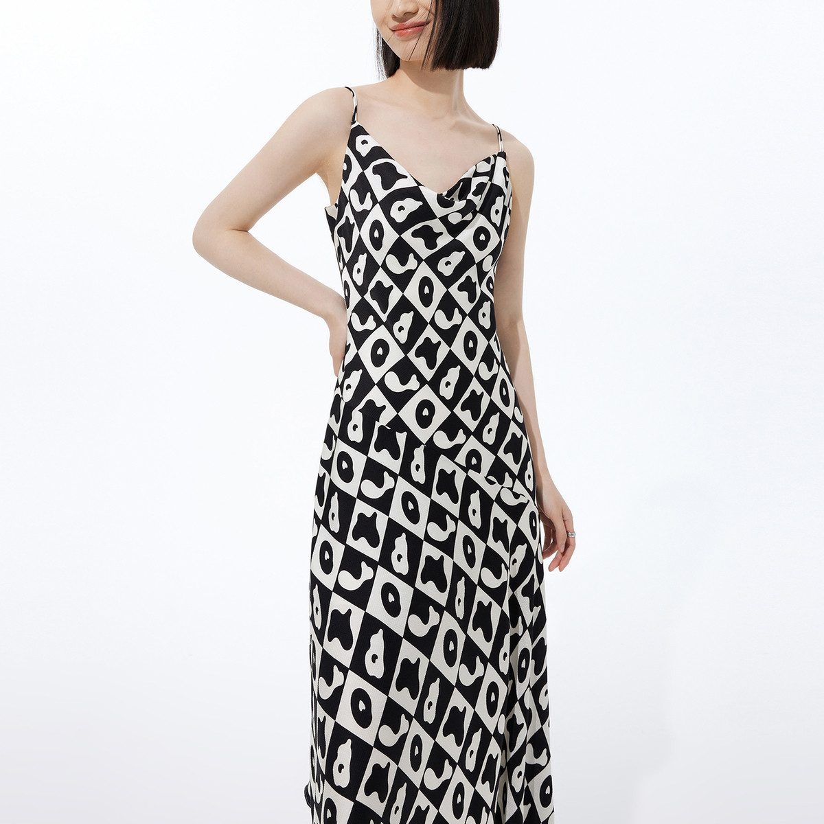 连衣裙女夏季度假风高级感法式简洁纯色光泽醋酸性感吊带连衣裙 396315