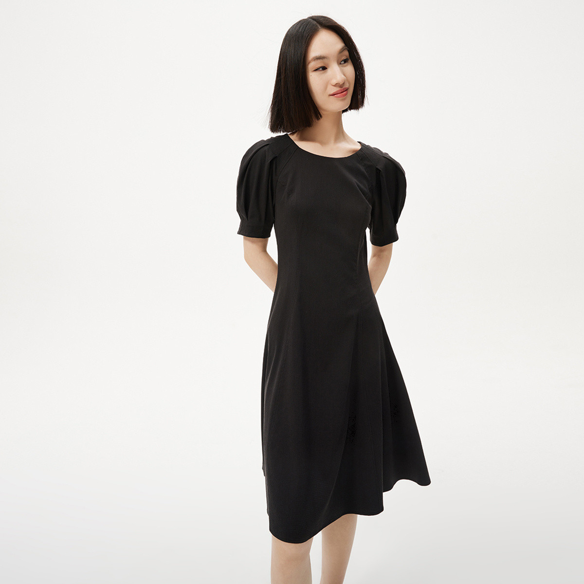小黑裙连衣裙气质夏季季高级感设计感后背镂空泡泡袖A字裙女 901467