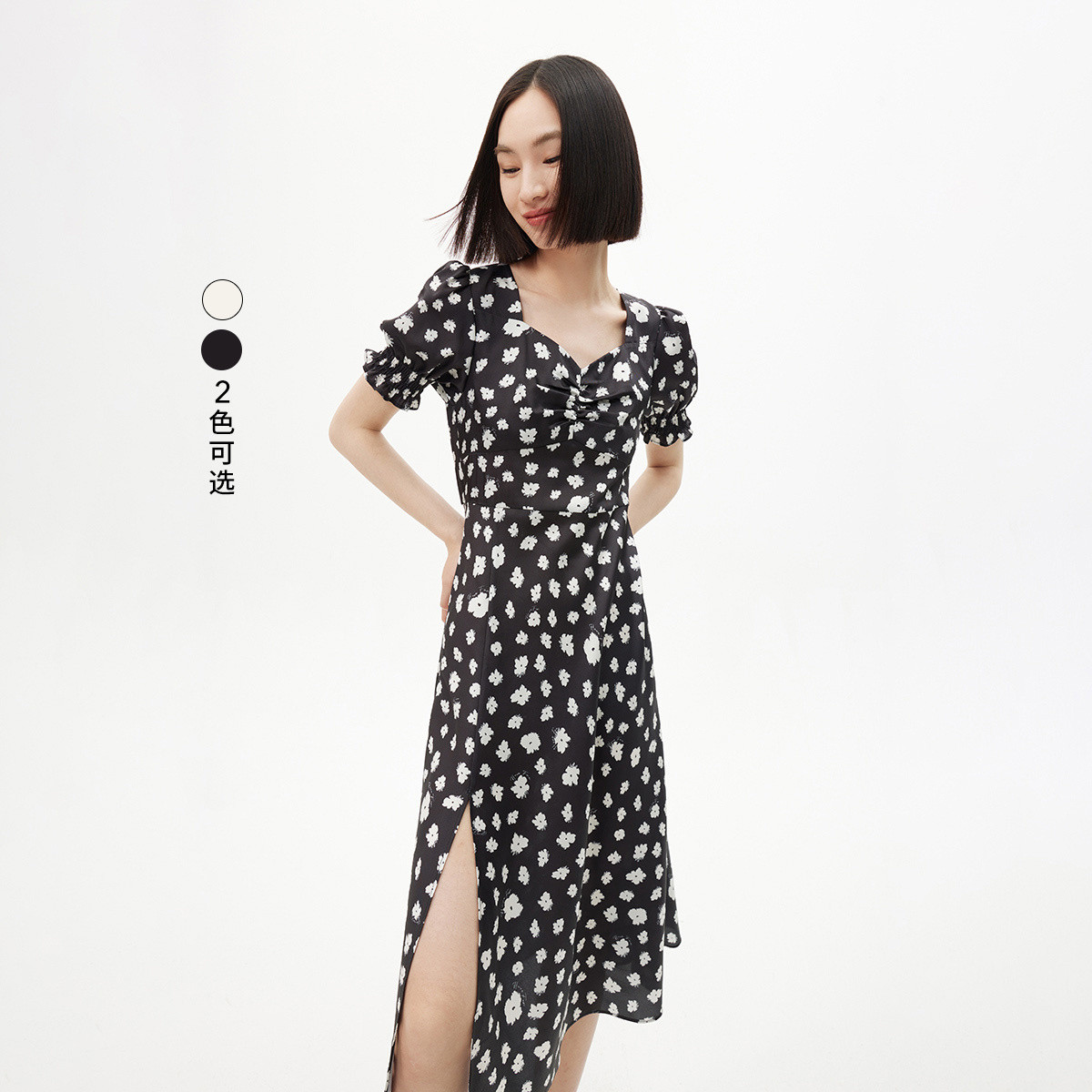 【明星同款】夏季季浪漫花法式优雅方领慵懒泡泡袖高腰连衣裙 564699