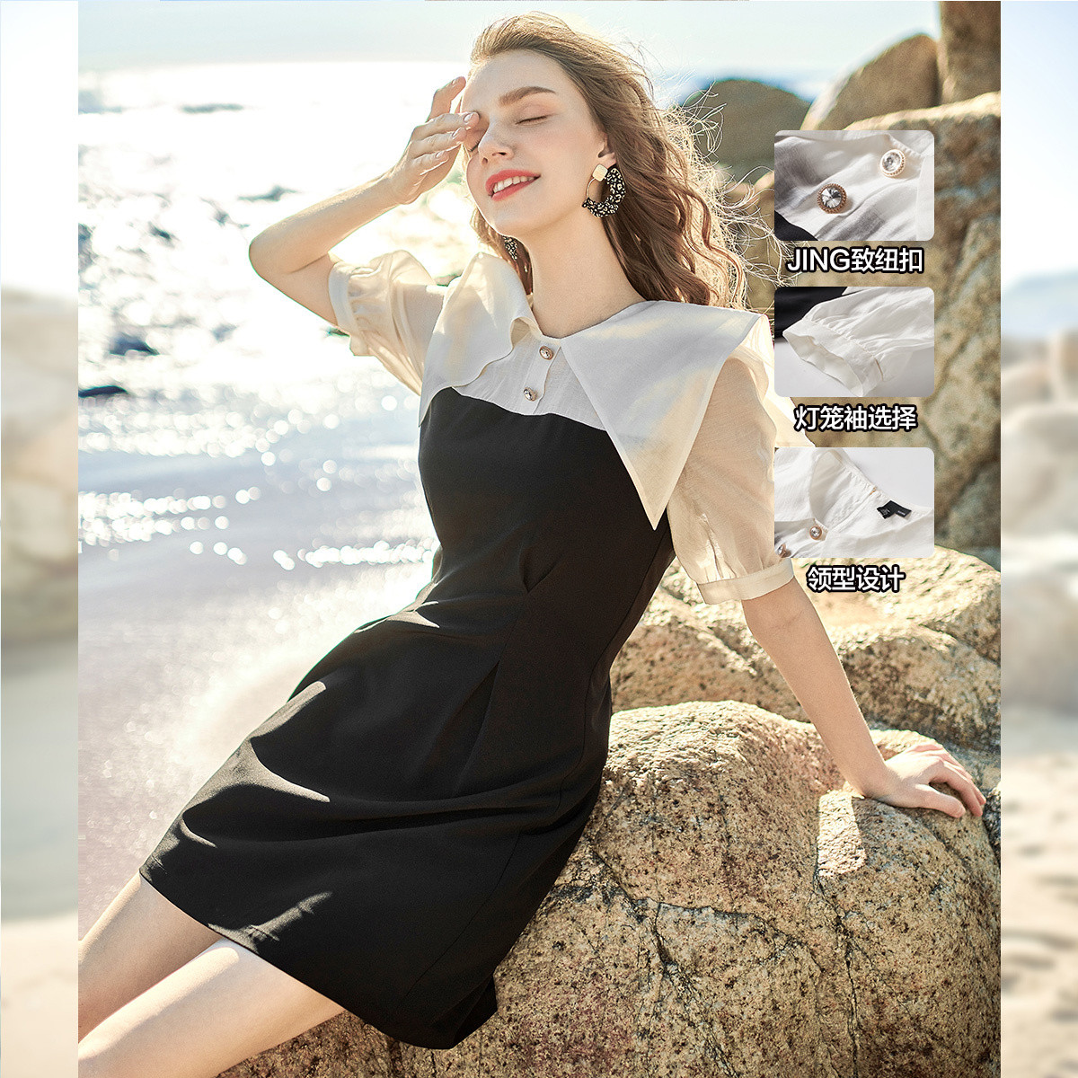 【巴黎剪影】夏装拼接连衣裙女显瘦法式气质短裙 670676