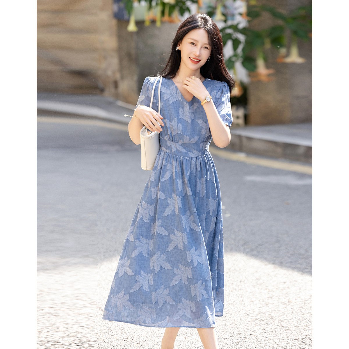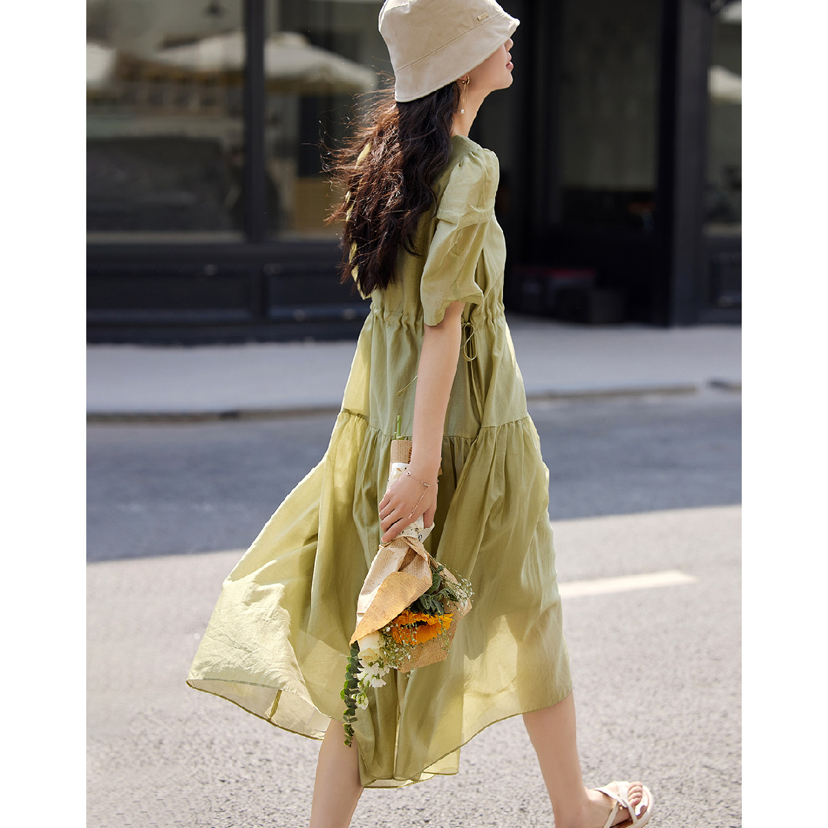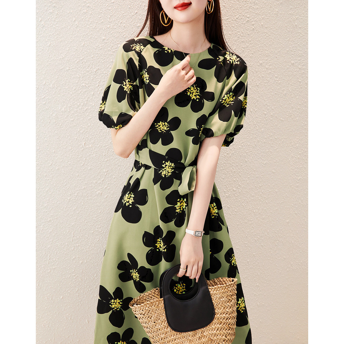 【显瘦飘逸长裙】轻薄气质高级感收腰泡泡袖夏季短袖连衣裙女 197186