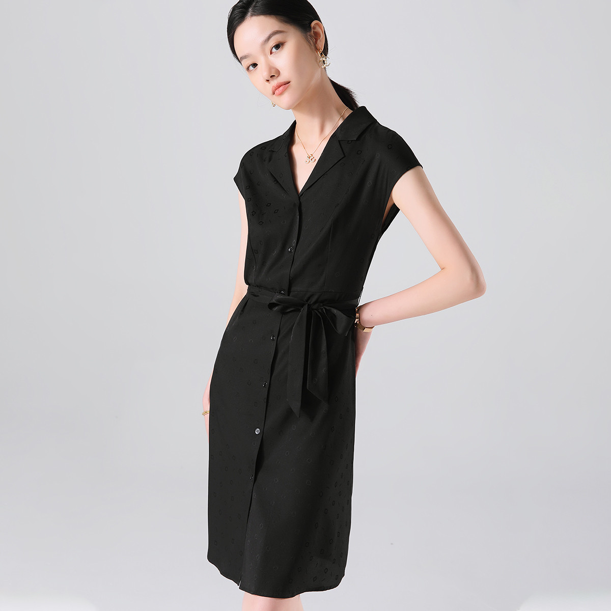 显瘦腰带春秋法式轻奢名媛连衣裙女甜酷风小众黑色中裙 347732