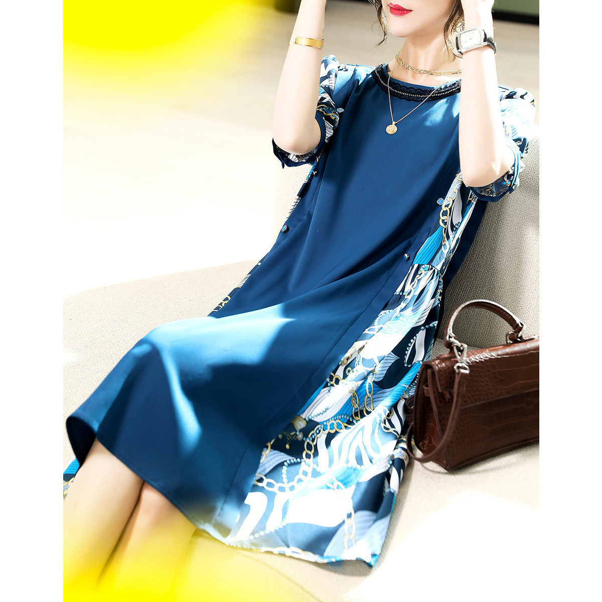 【福利钜惠】2024夏季时尚轻奢印花拼接圆领宽松显瘦连衣裙 486473