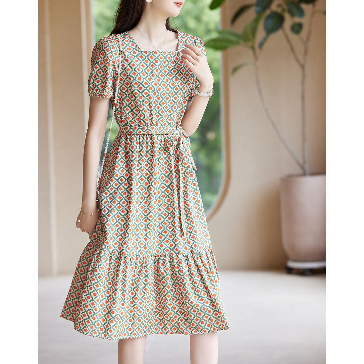 【甜美连衣裙】夏季文艺风印花小众优雅连衣裙女 950593