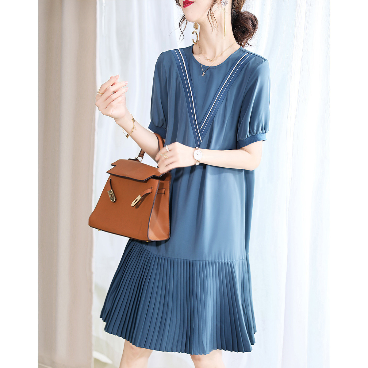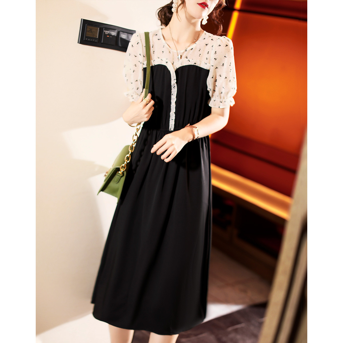 【超值捡漏】2025年时尚宽松显瘦撞色印花圆领短袖雪纺连衣裙 855817