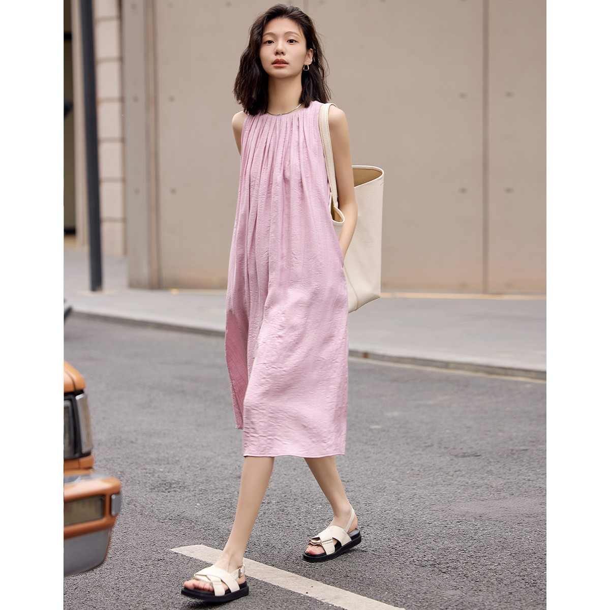 【法式浪漫连衣裙】夏款圆领无袖背心裙净色连衣裙女 588866