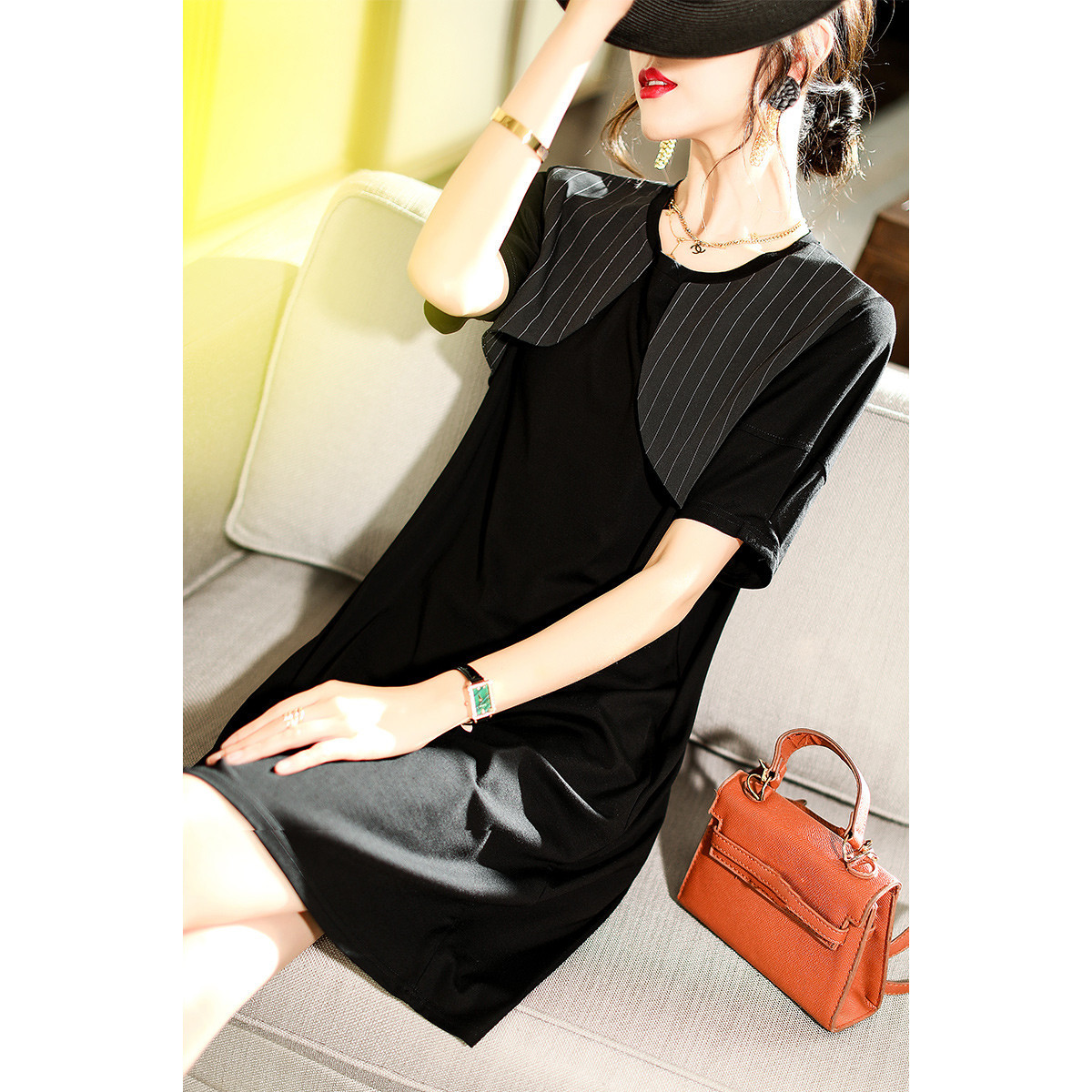 气质小黑裙2025夏季新款气质通勤短袖A字裙胖MM大码连衣裙 952969
