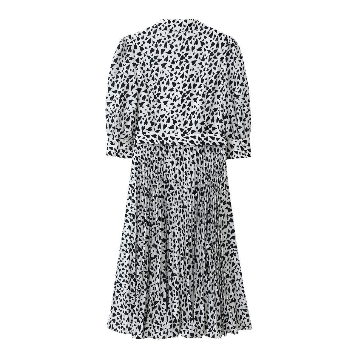 连衣裙气质夏季高级感俏皮爱心印花优雅泡泡袖高腰连衣裙女 250907