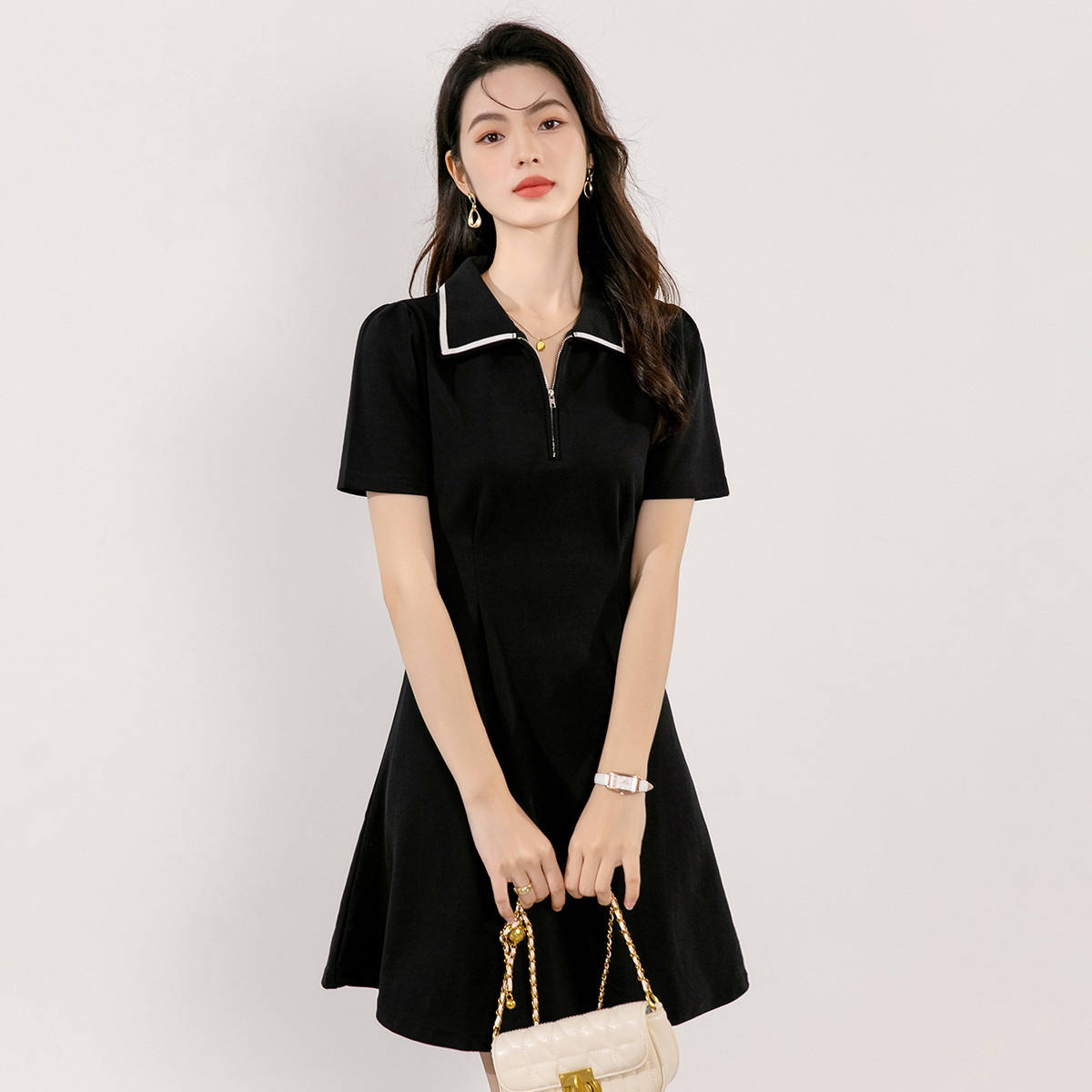 【商场同款】夏装 肌理感polo裙针织连衣裙休闲撞色内搭 174671