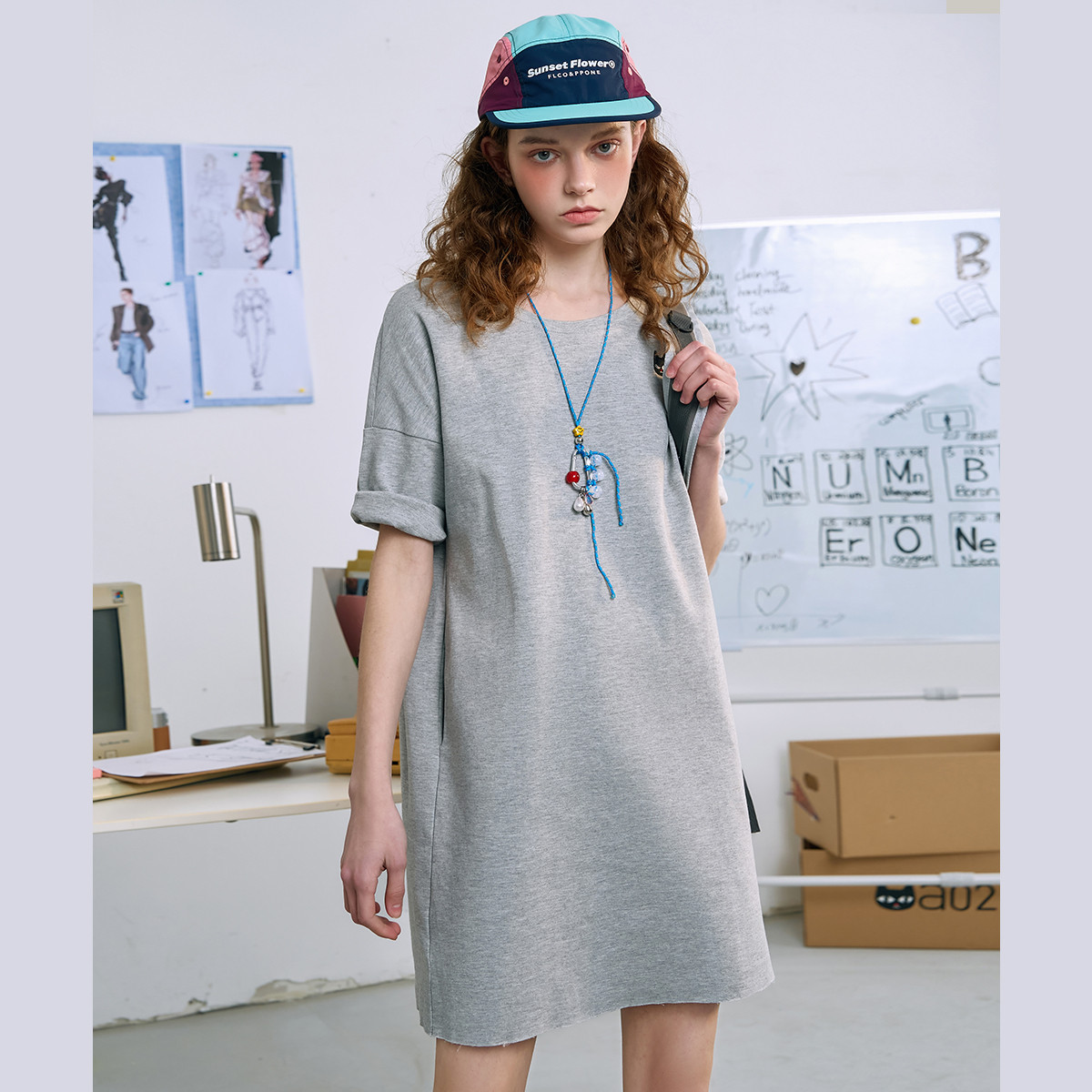 小个子遮肚子显高T恤宽松卫衣裙秋季半袖中款休闲连衣裙 185757