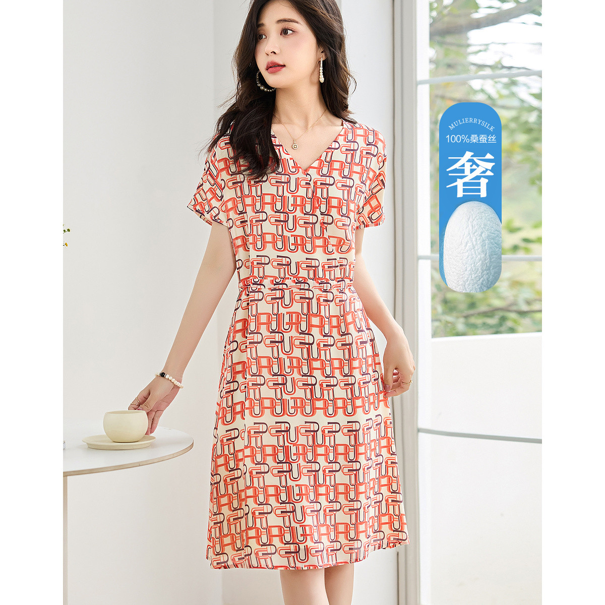 【繁花圆舞曲】夏奢享桑蚕丝印花a字优雅显瘦连衣裙女 050561