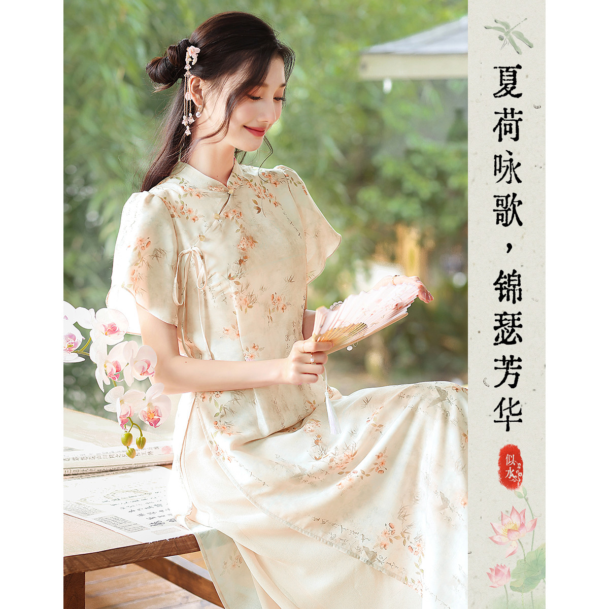 【醉染红桃】夏高级感改良旗袍水墨印花设计感显瘦小个子裙子 199448