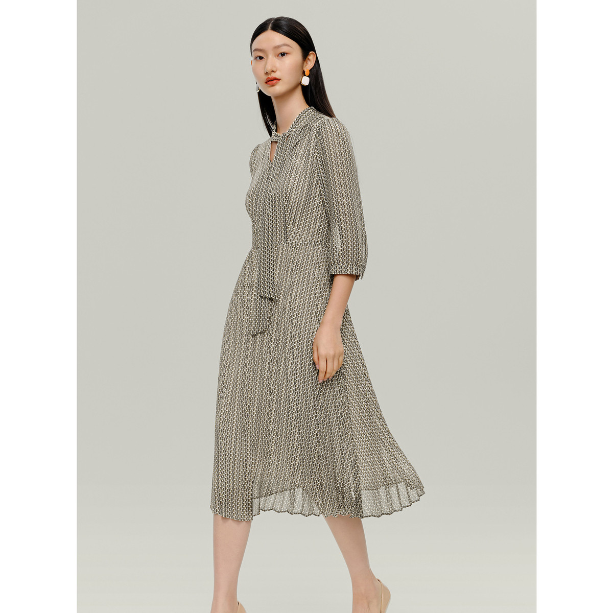 商场同款JZ玖姿几何印花雪纺连衣裙女秋季JWDQ50041 121868