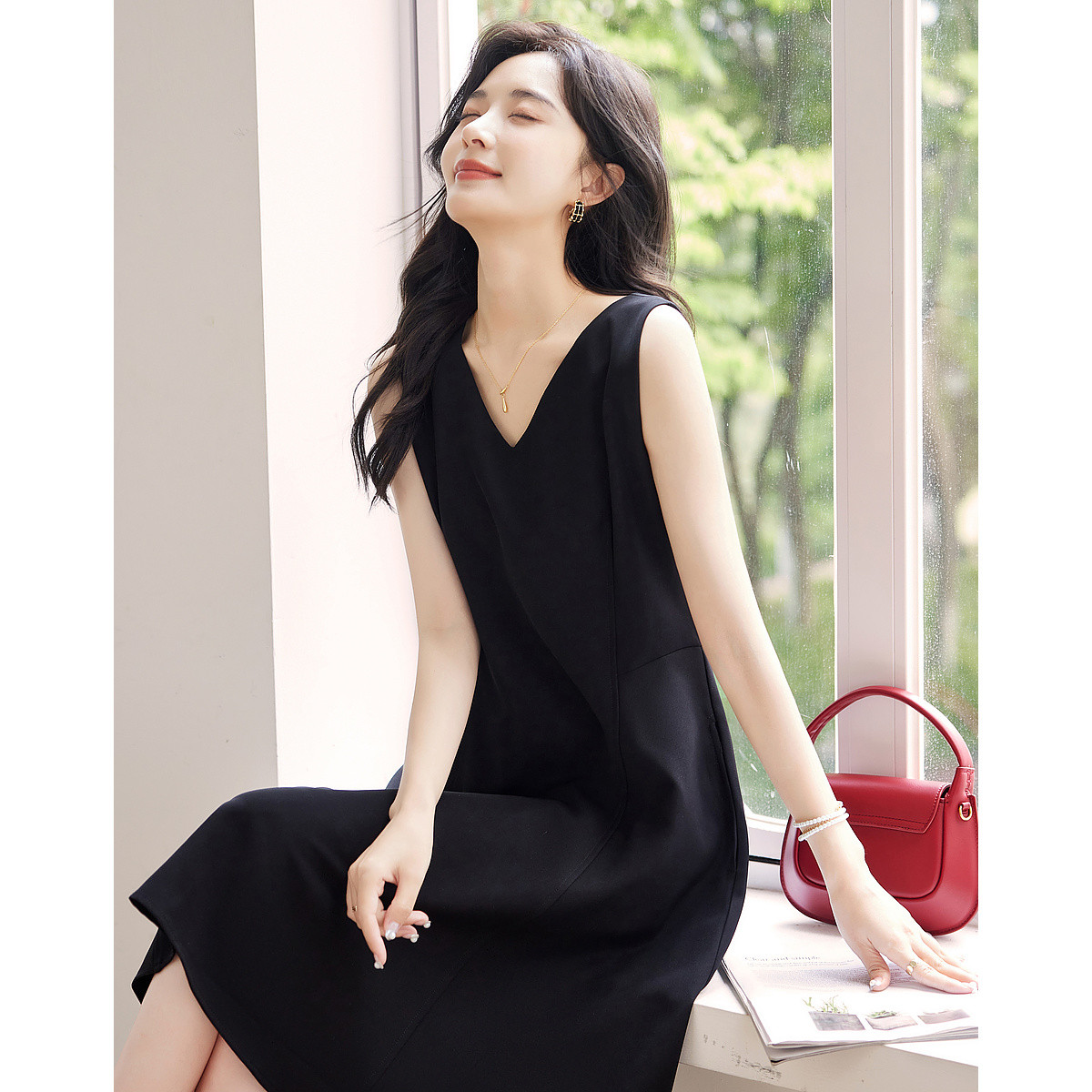 【清冷小白花】夏气质女神V领收腰小白裙无袖显瘦背心连衣裙女 620801