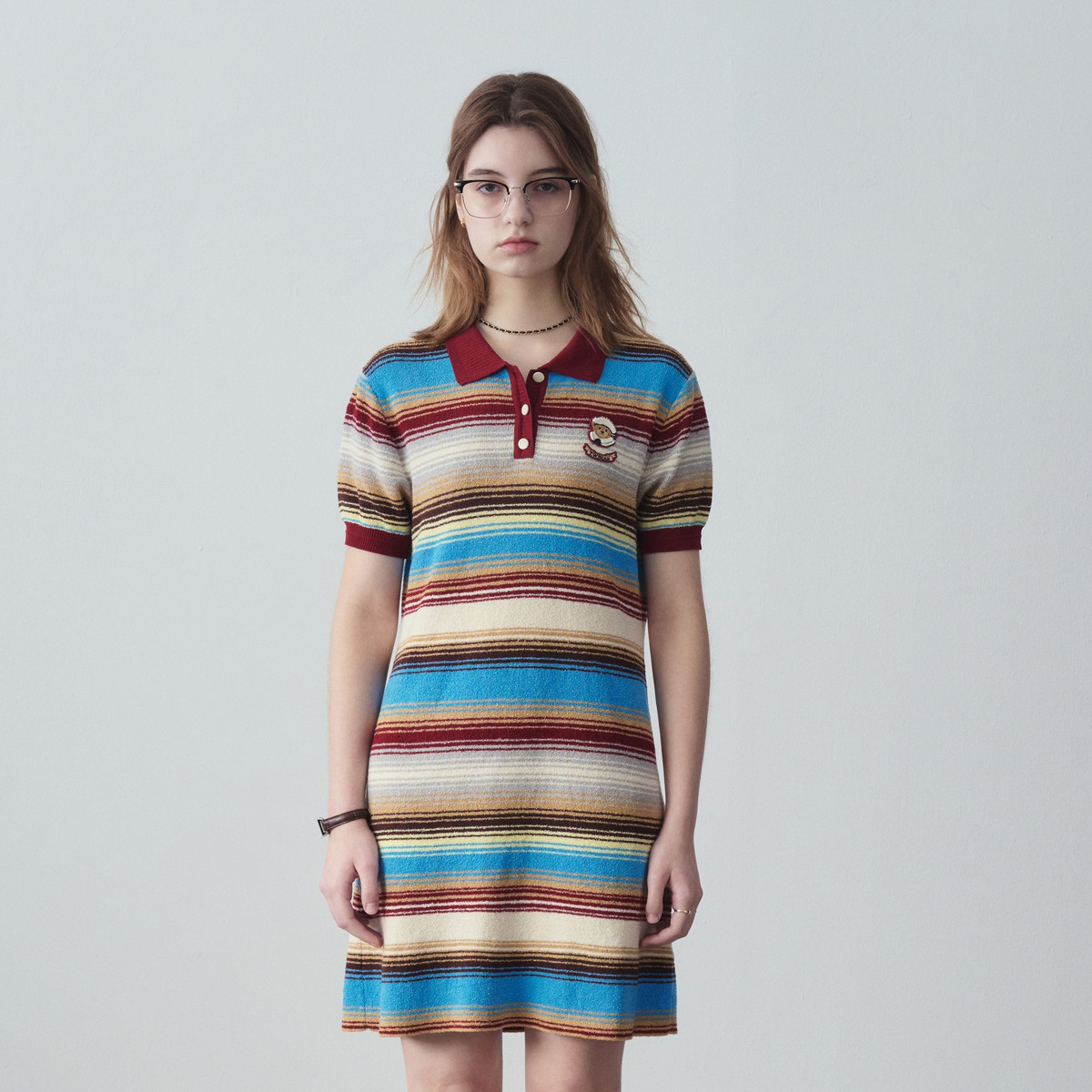 小熊夏季款针织POLO连衣裙薄款气质裙时尚女装 806721