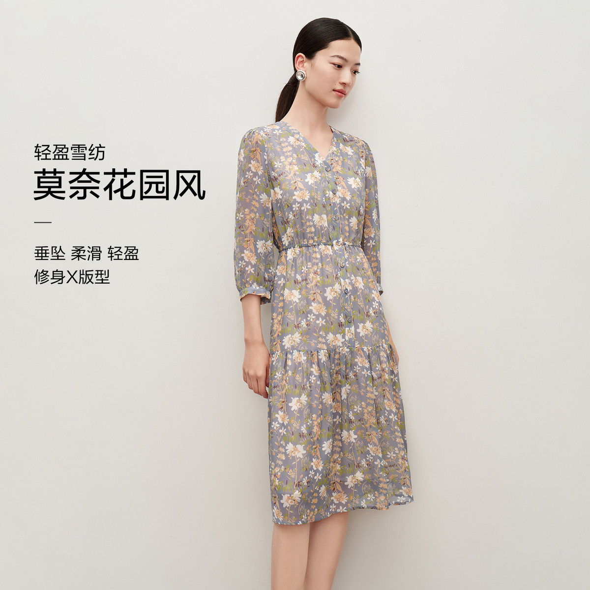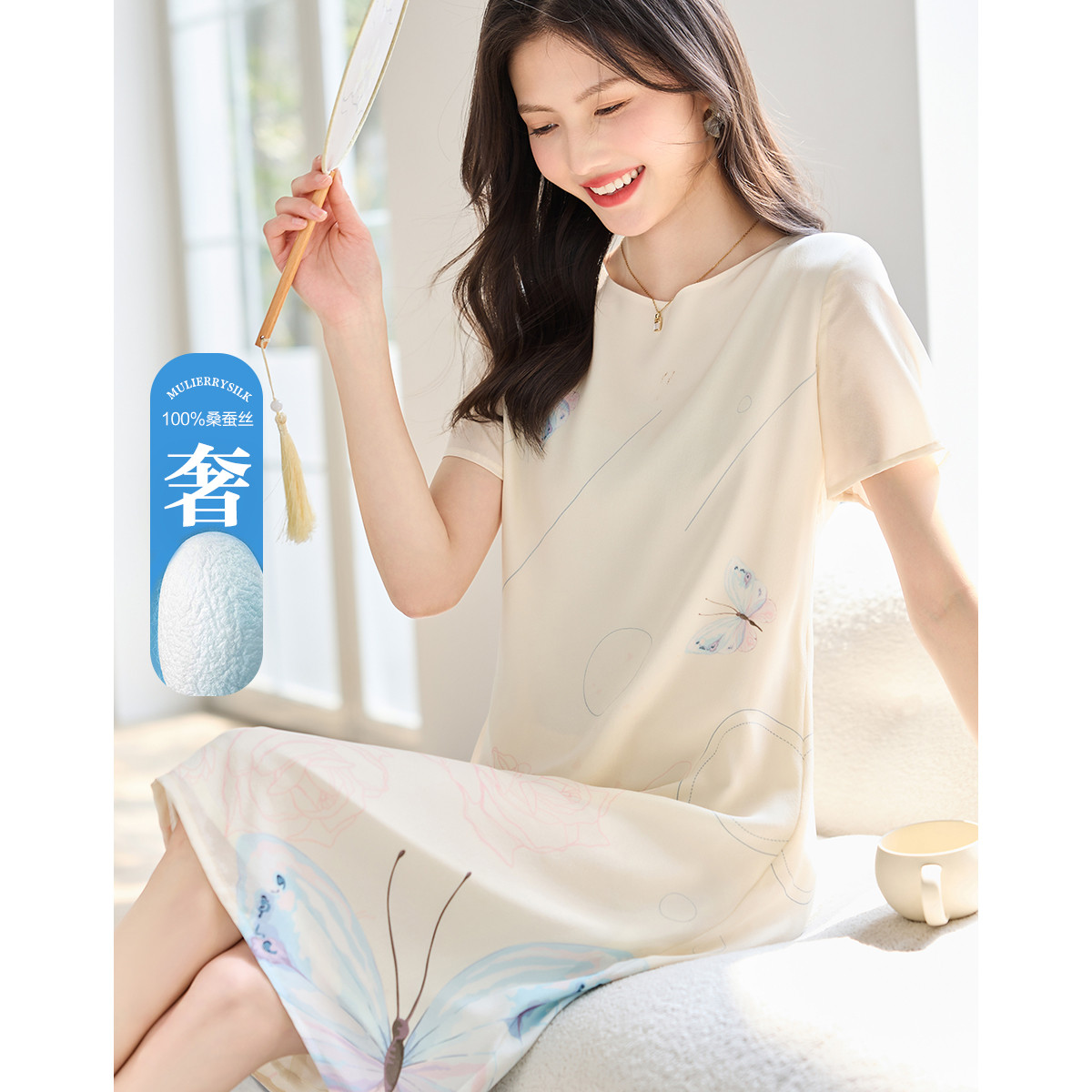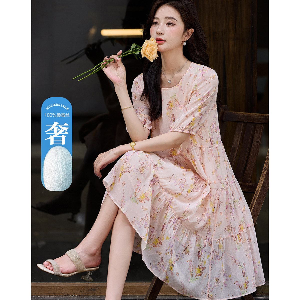 【清冷淡雅仙子】夏奢享桑蚕丝圆领定位印花舒适连衣裙 480065