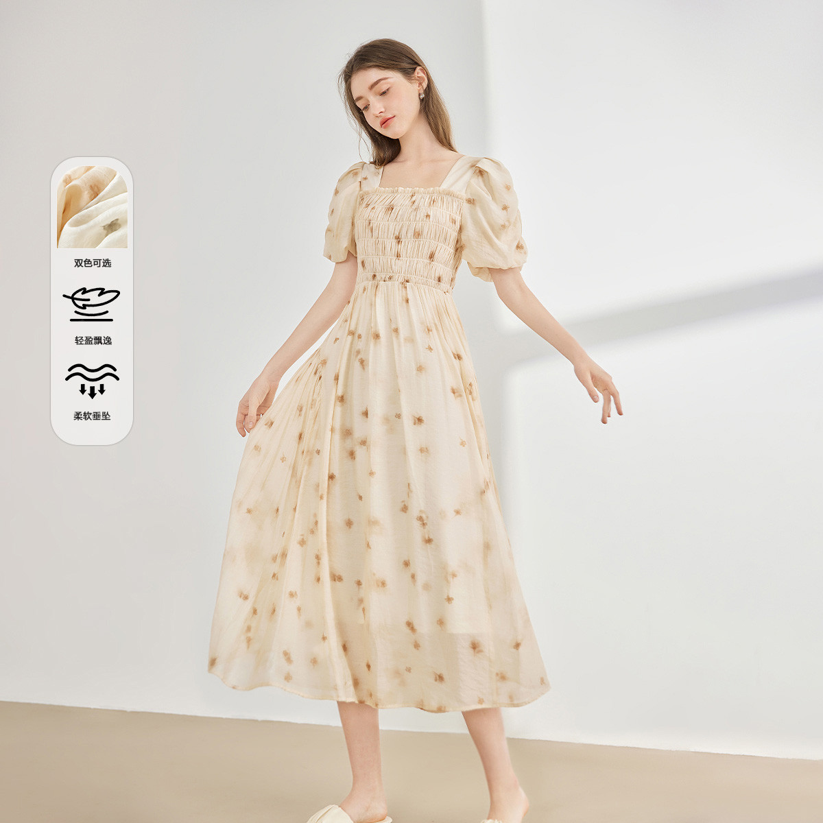 【2024夏季】茶歇法式方领碎花连衣裙泡泡袖显瘦中长款仙女裙 991828