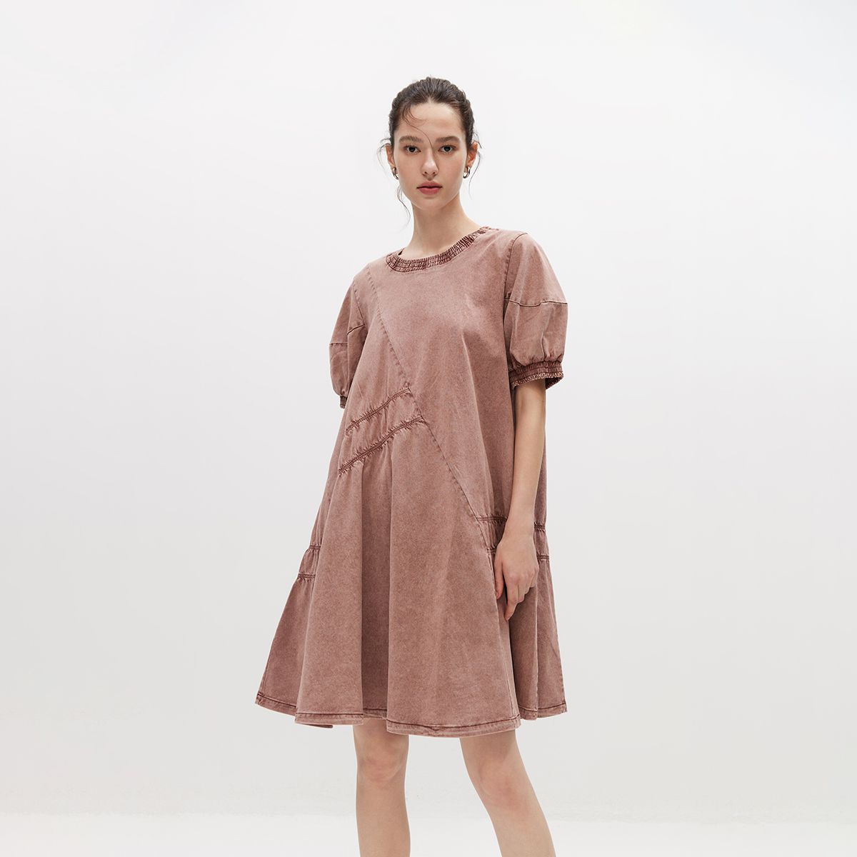 【时尚休闲】夏季泡泡袖宽松短裙连衣裙女 898586