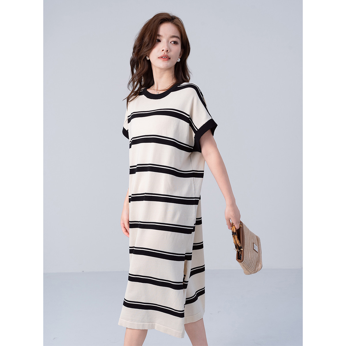 连衣裙女2024新款夏宽松时尚气质条纹短袖针织t恤连衣裙女夏 622239