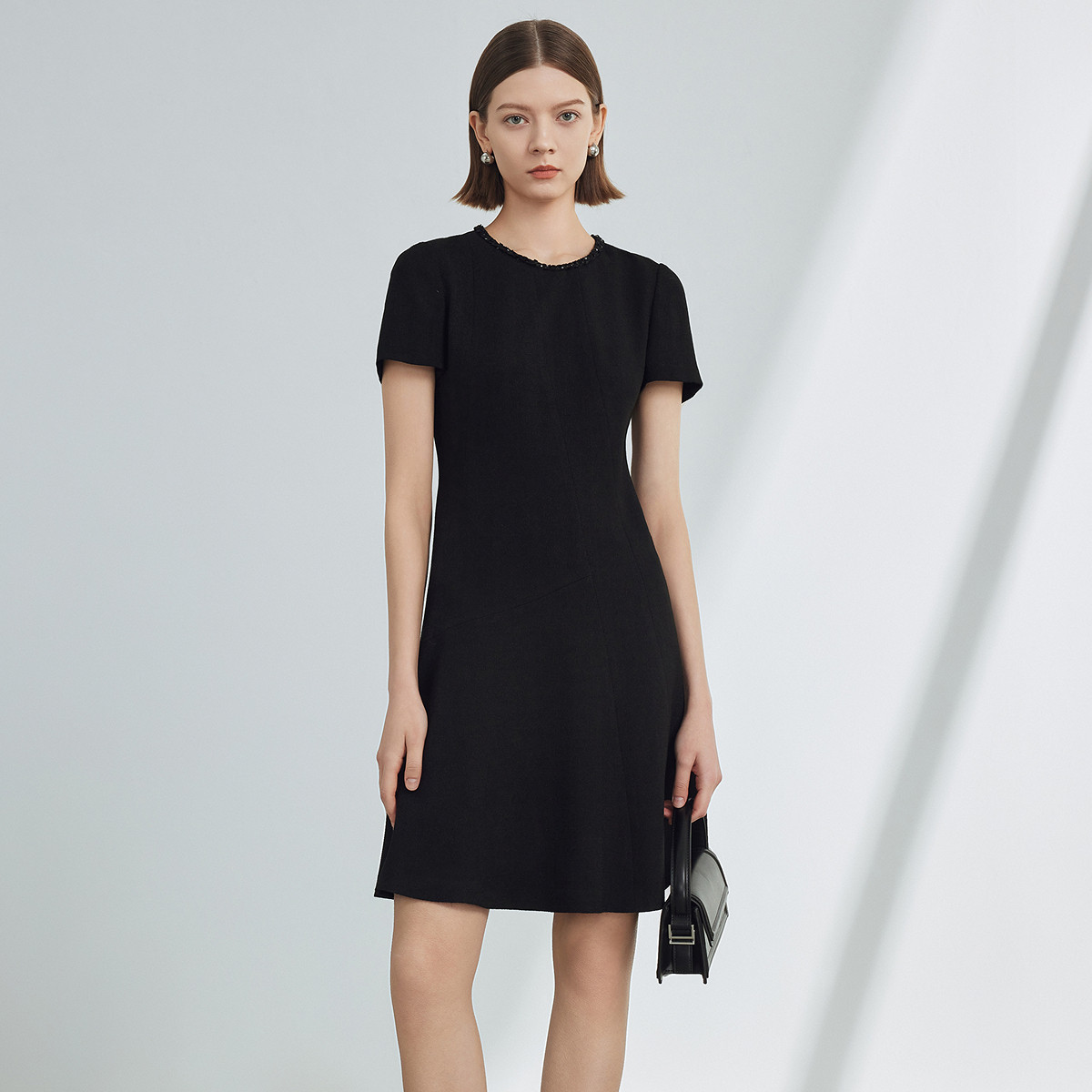 法式复古高级感小香风气质裙子夏收腰显瘦短袖连衣裙 275545