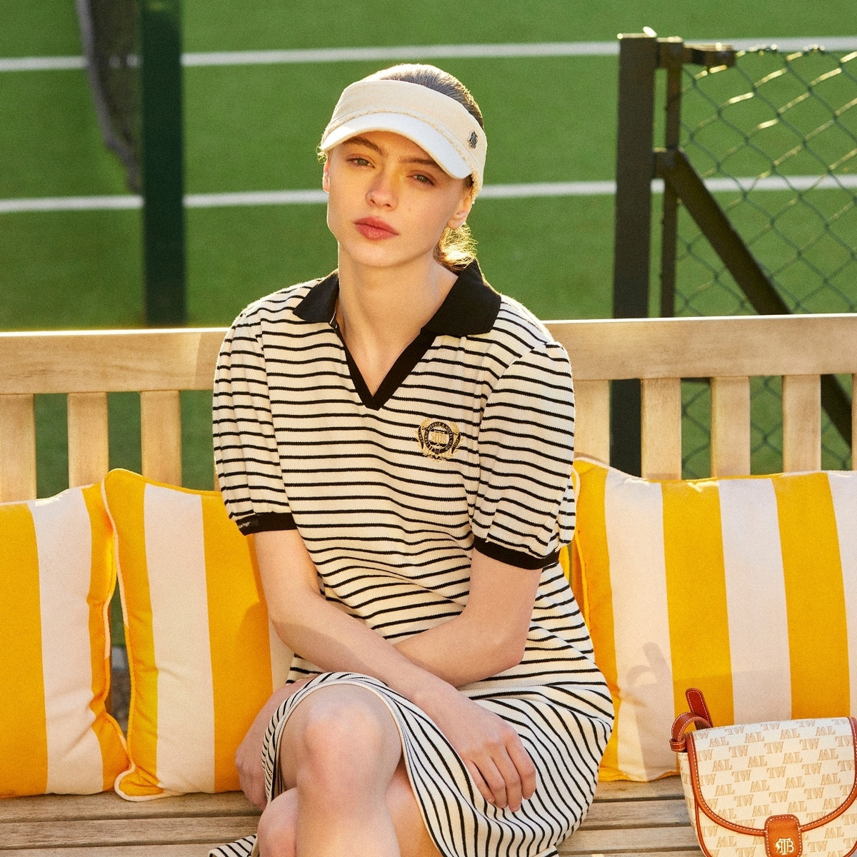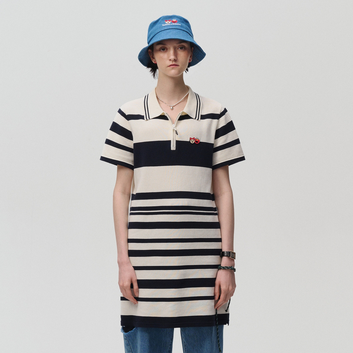 小熊&芝麻街联名款撞色条纹针织POLO连衣裙女装 909057