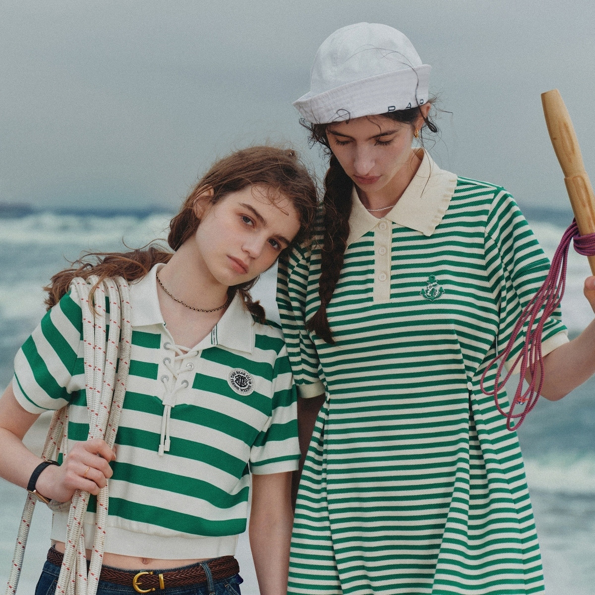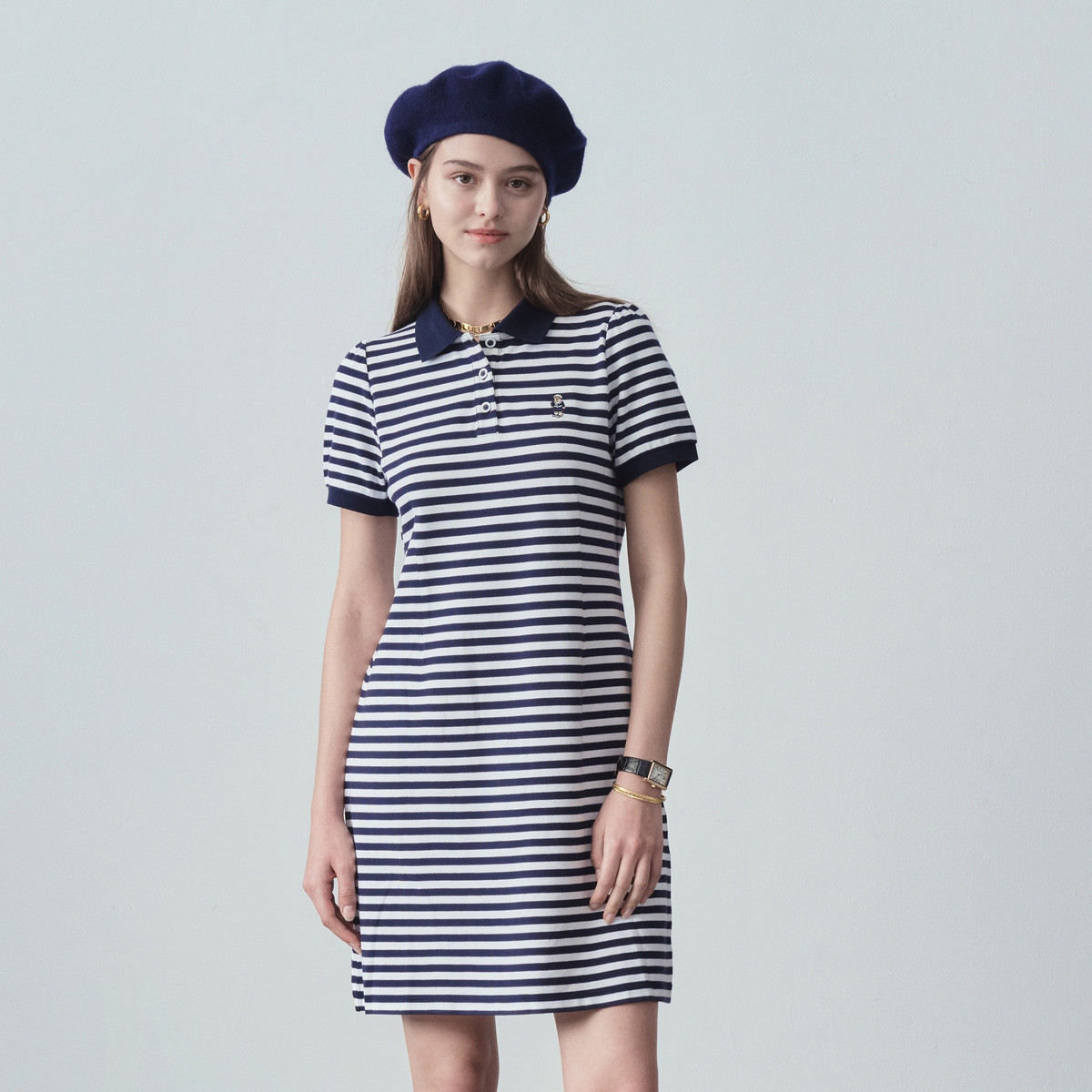 小熊女装简约风夏季条纹撞色POLO连衣裙宽松时尚气质 630273