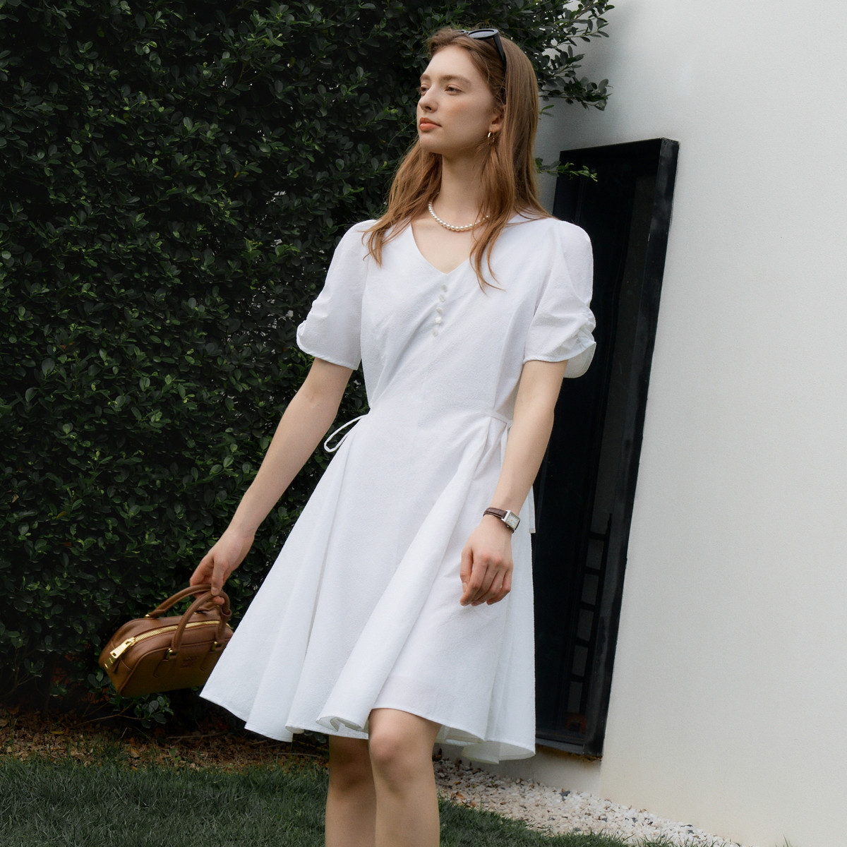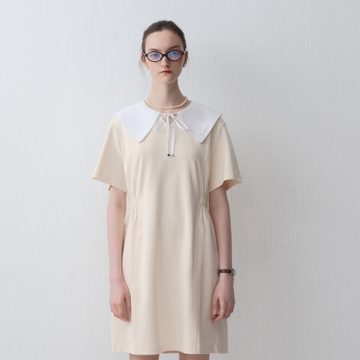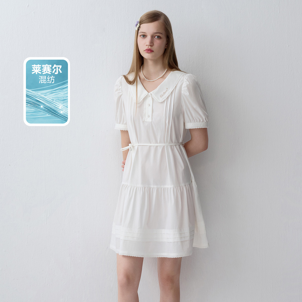小熊夏季款娃娃领收腰连衣裙气质裙字女装森系 855489