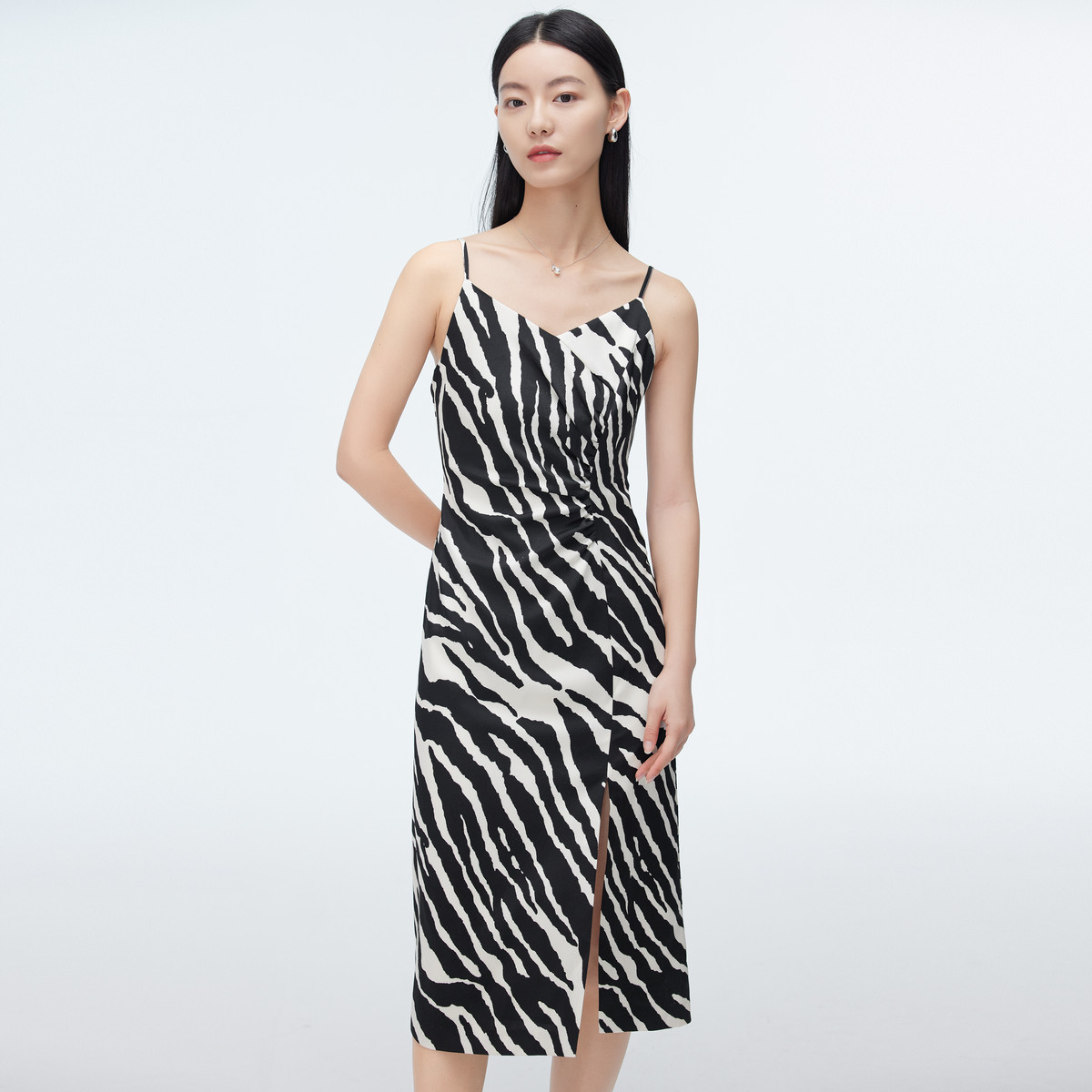 高级感时尚斑马纹开叉吊带裙子女夏季气质显高风情万种V领连衣裙 144707