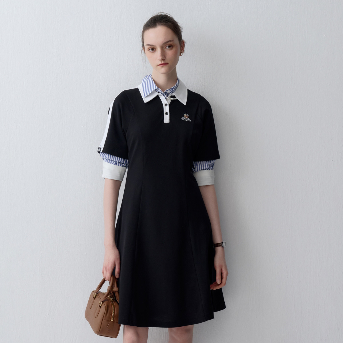 小熊女装时尚简约夏季复古运动风微A撞色Polo连衣裙 605377