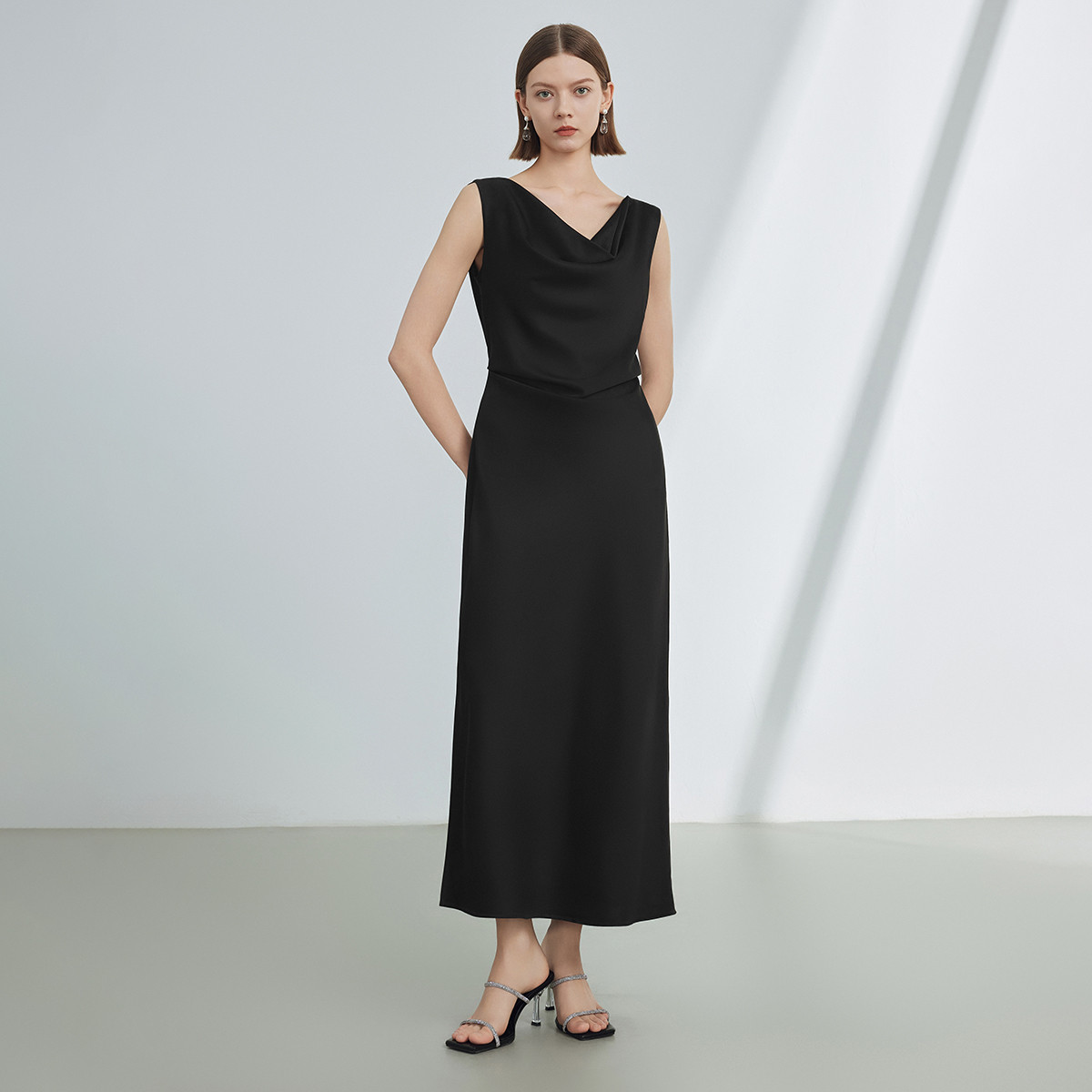 醋酸法式荡领设计感气质长裙夏高级感女装连衣裙 354393