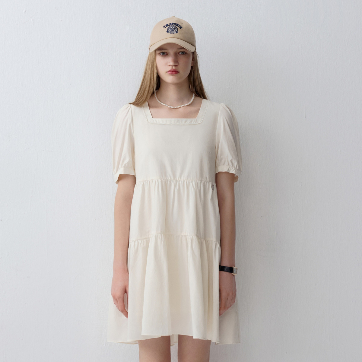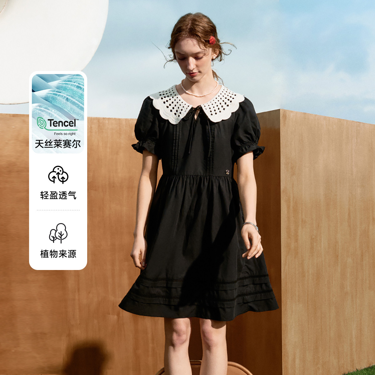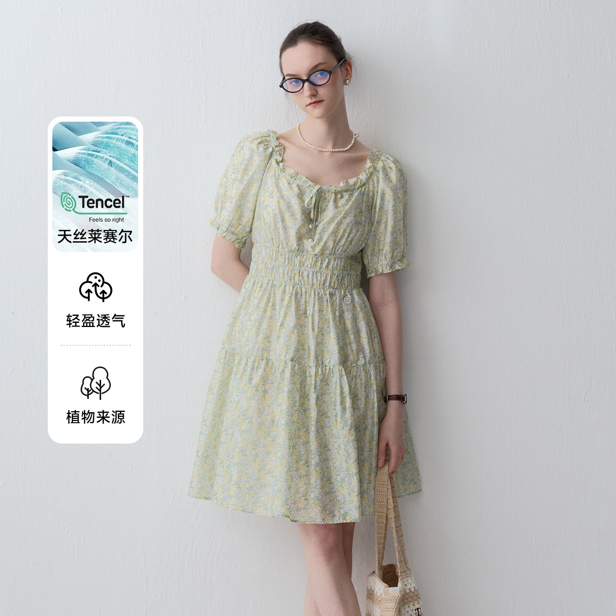 连衣裙【天丝莱赛尔混纺】小熊曼波公主裙法式方领连衣裙女装 896449