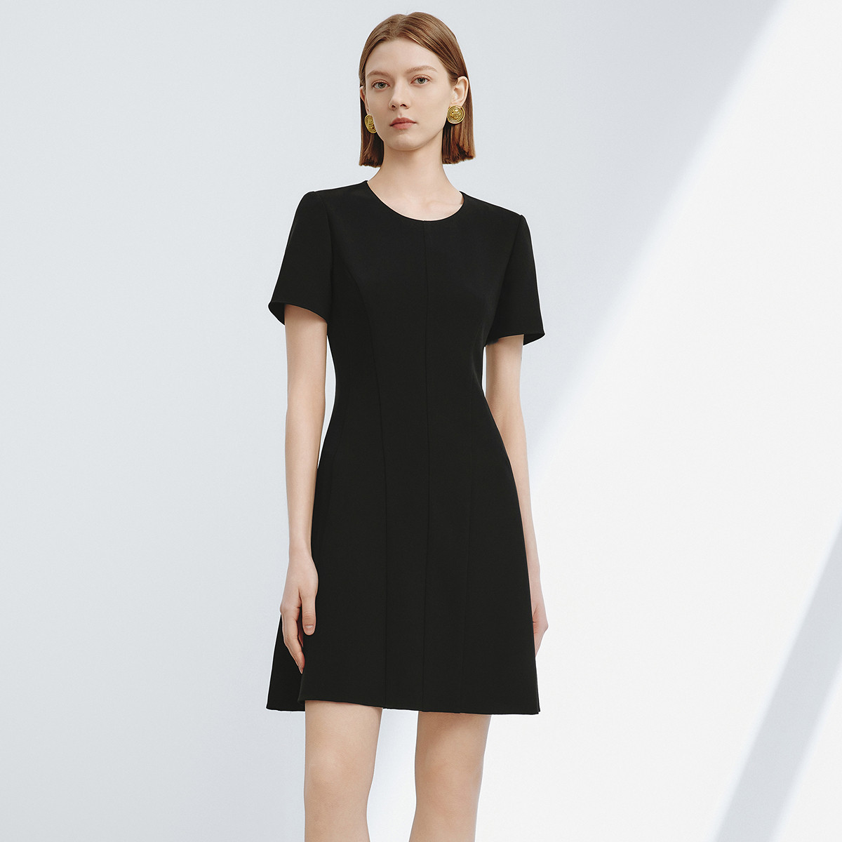 醋酸法式气质高级感收腰短袖连衣裙夏款设计感裙子 285977