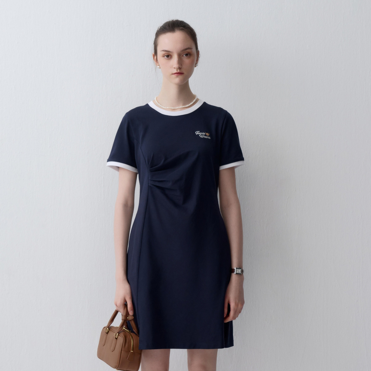 连衣裙小熊女装夏季复古运动风侧缝拼接压褶连衣裙 153281