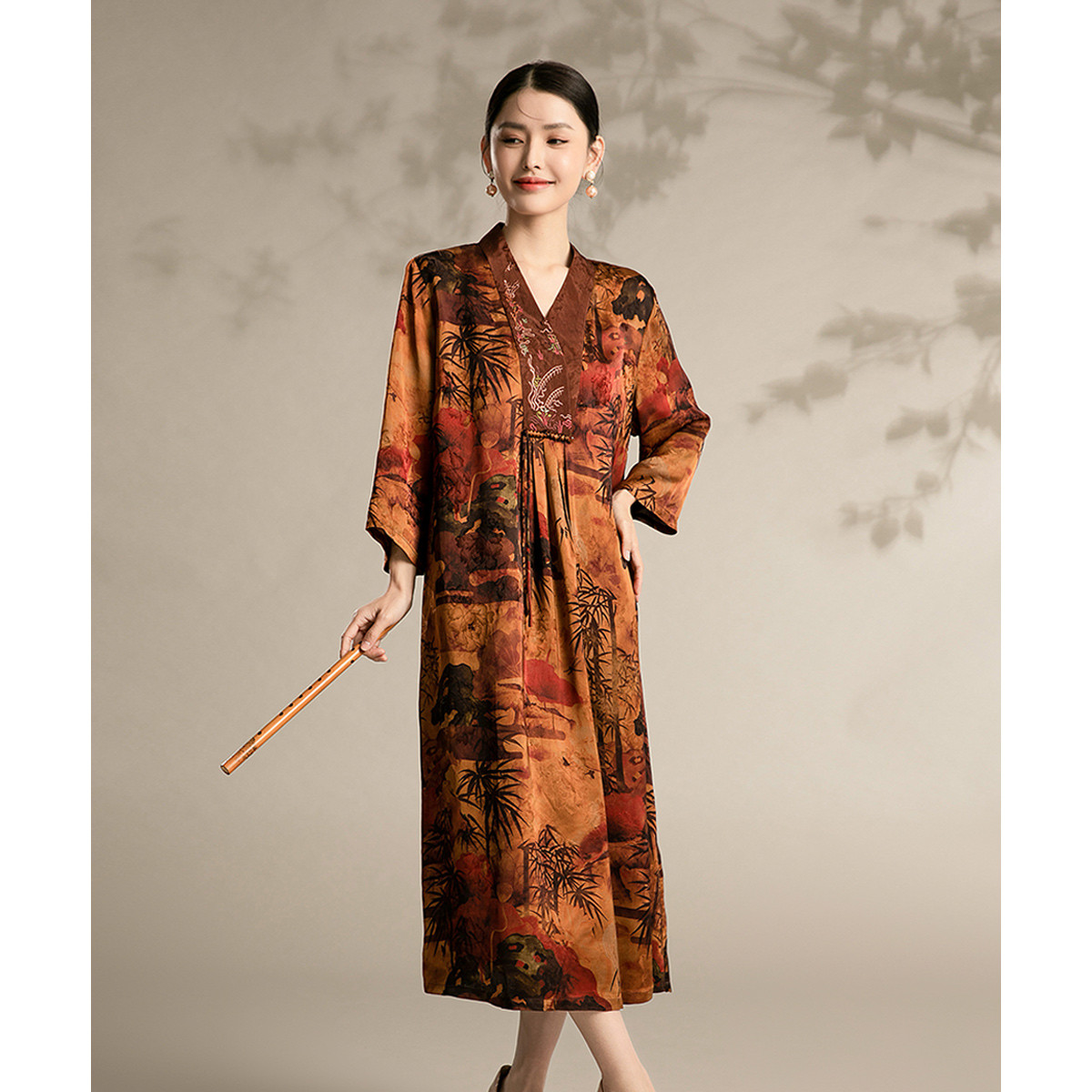 【水墨染旗袍】新中式改良国风复古收腰连衣裙 516575