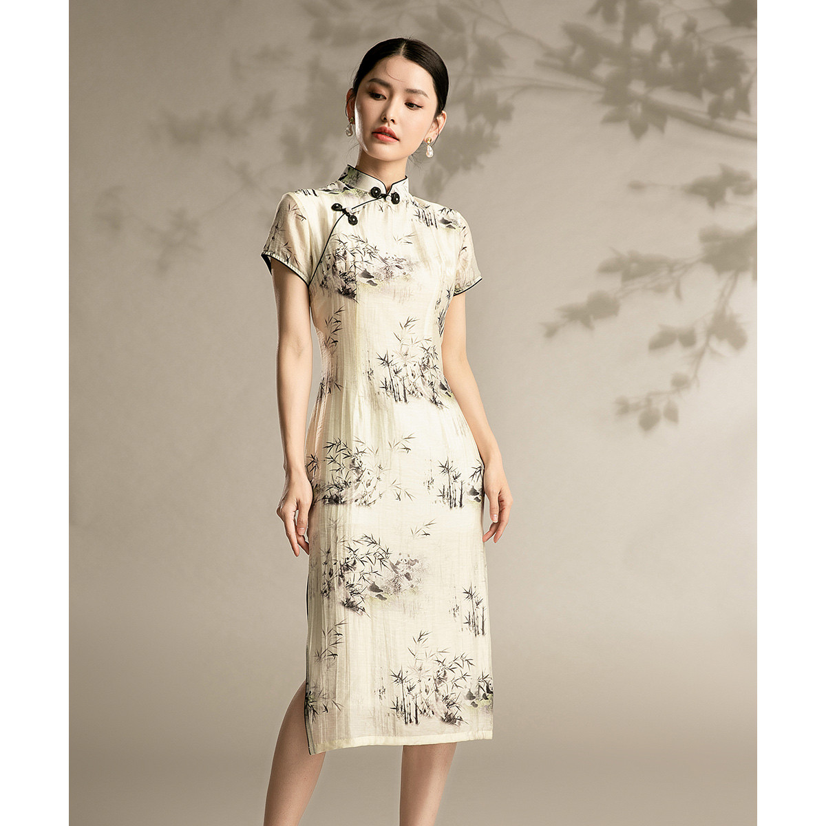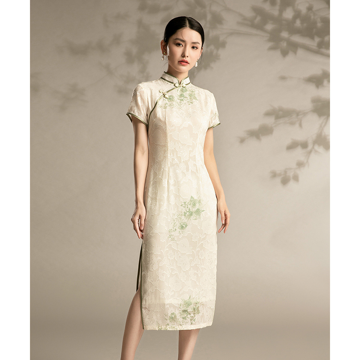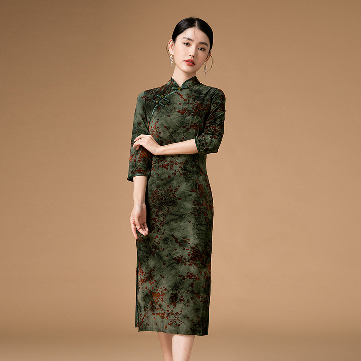 中式旗袍复古民国风气质修身中长素雅改良旗袍连衣裙 095135
