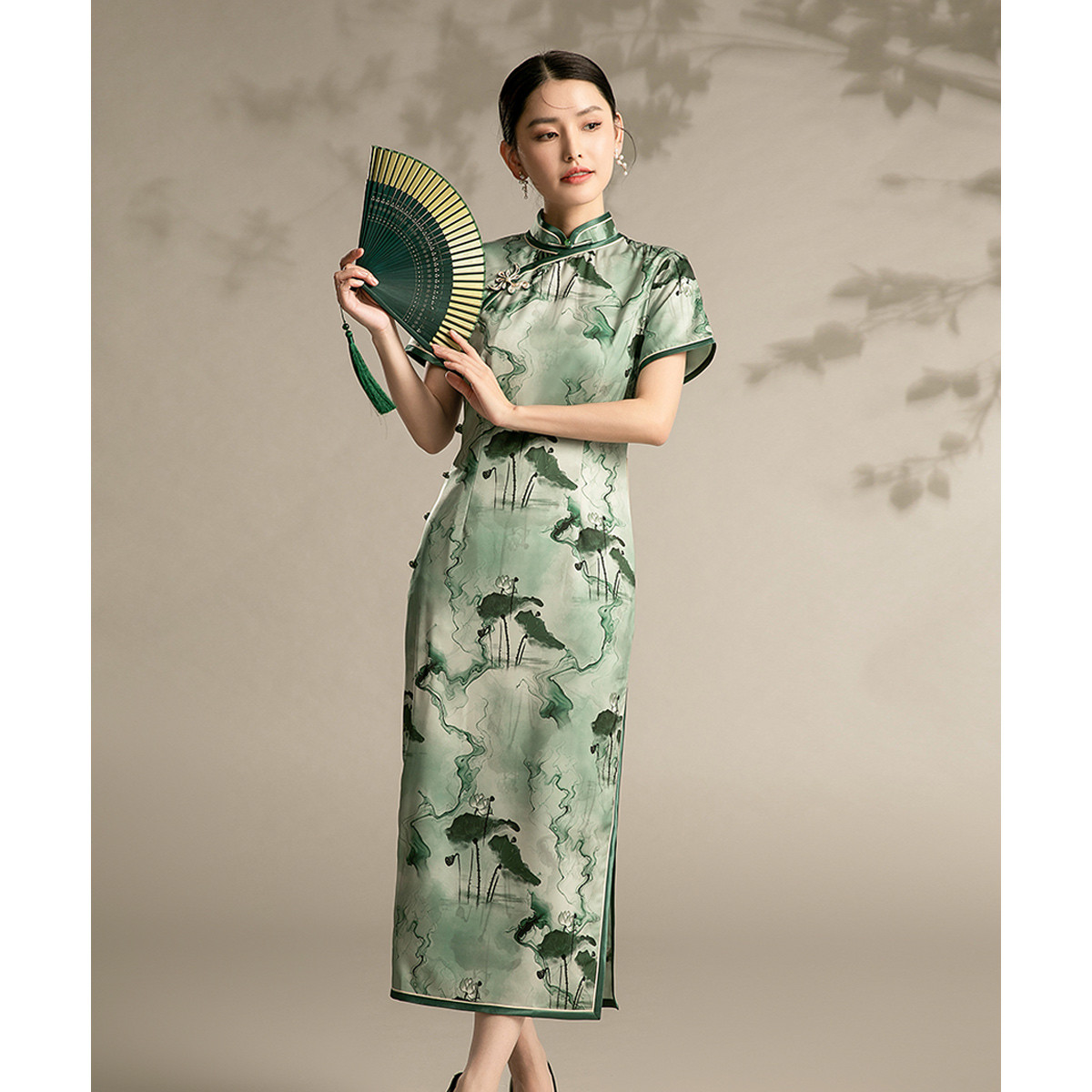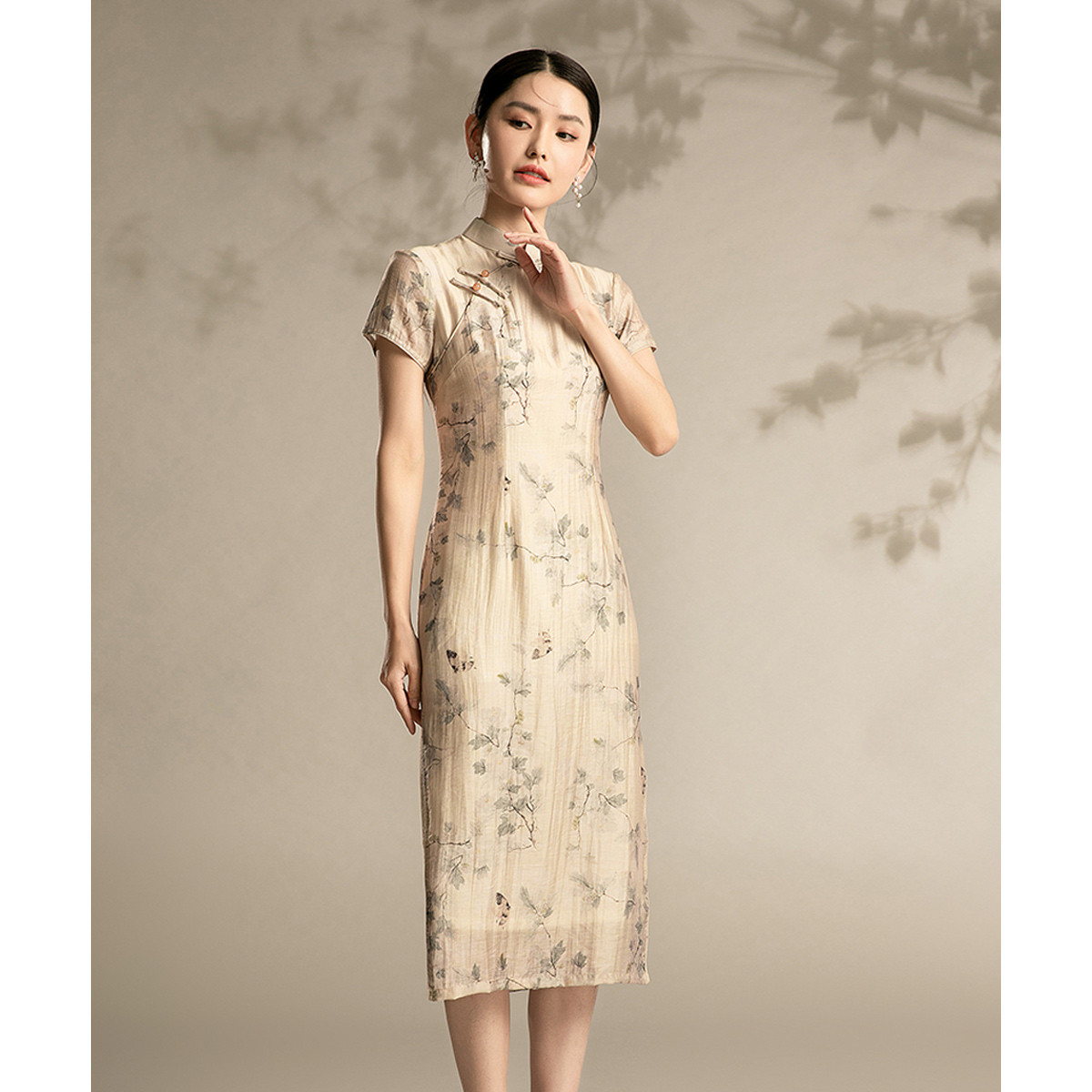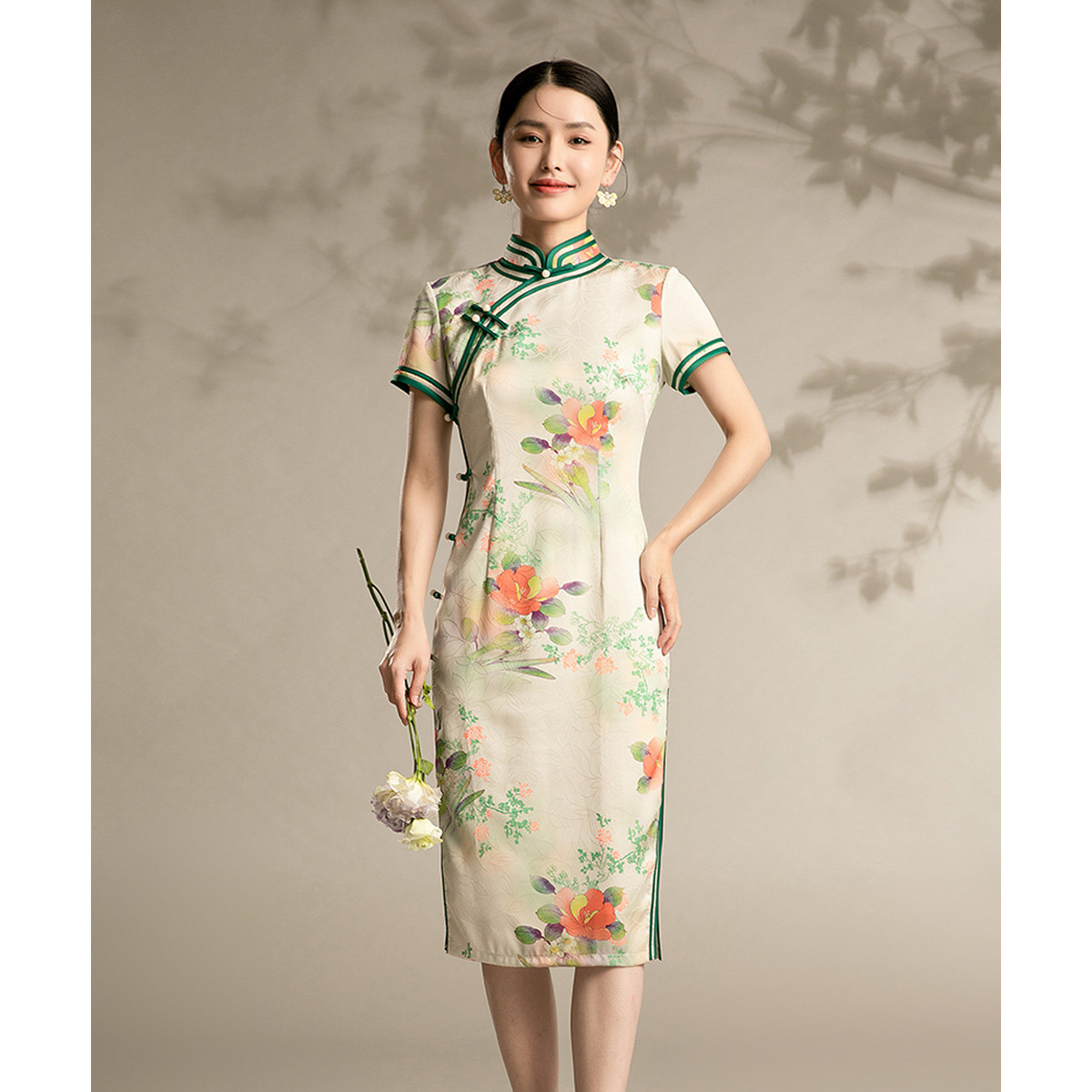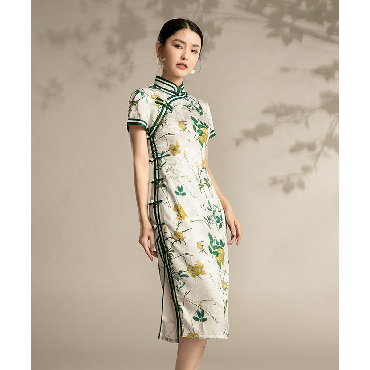 中式旗袍复古民国风气质修身中长素雅改良旗袍连衣裙 095135