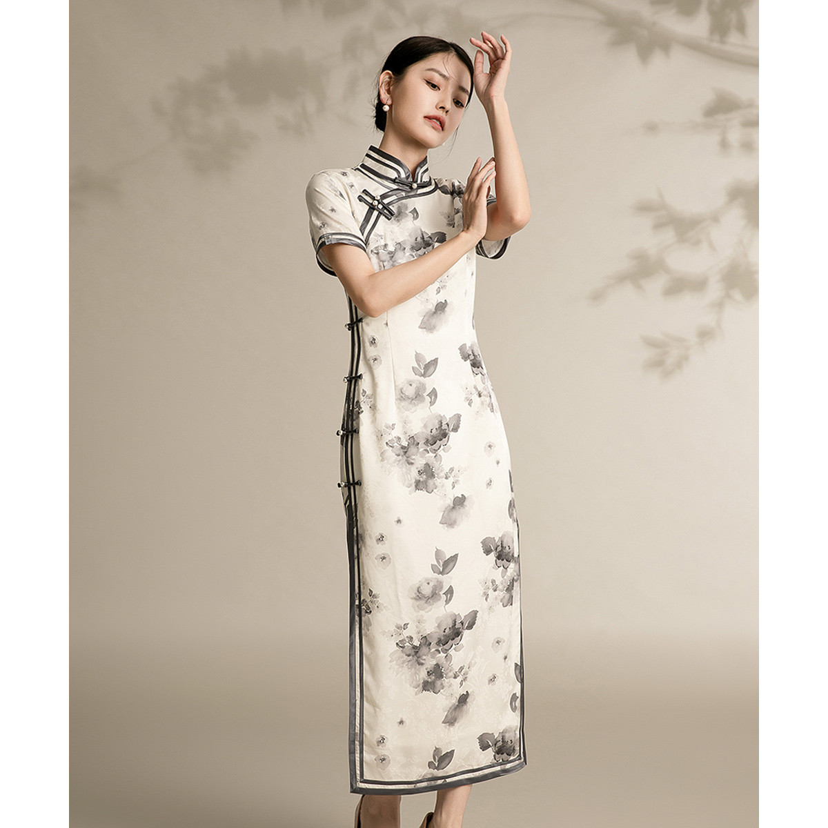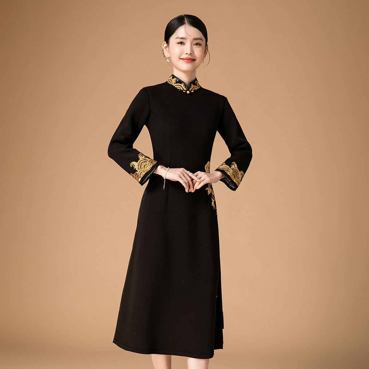 改良版立领旗袍连衣裙复古年轻款中国风修身气质连衣裙 348639