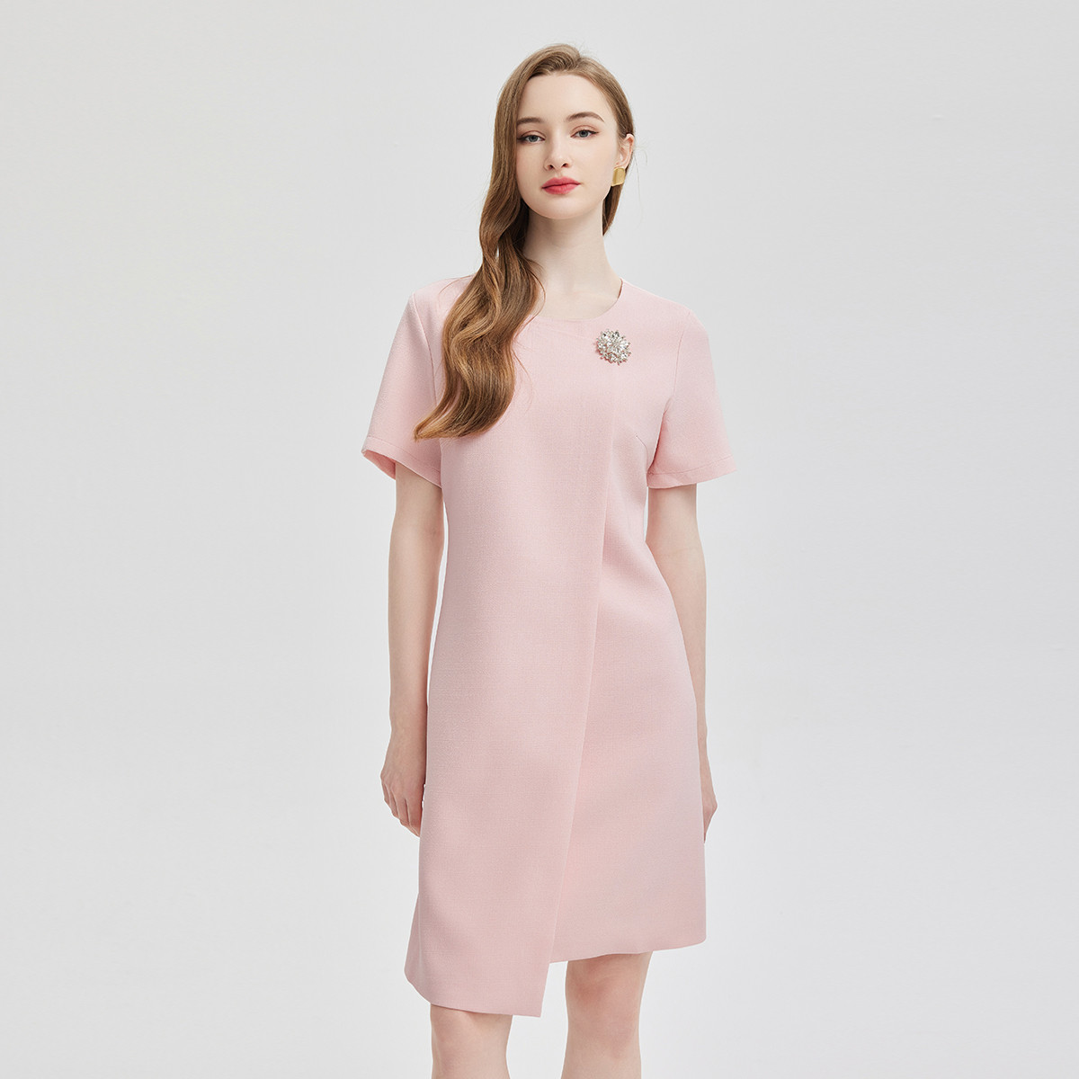 简约气质白领通勤不对称搭片设计水钻装饰扣高级显高显瘦连衣裙 645983